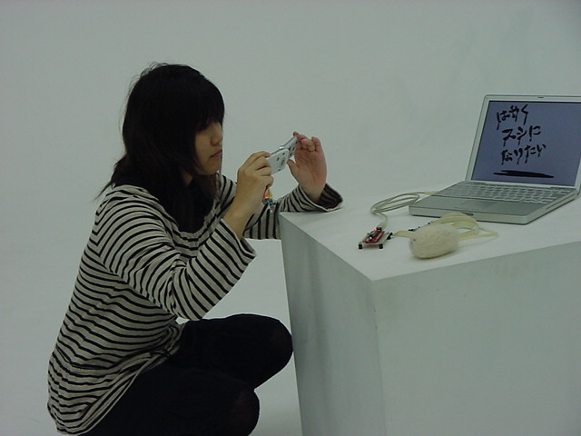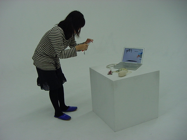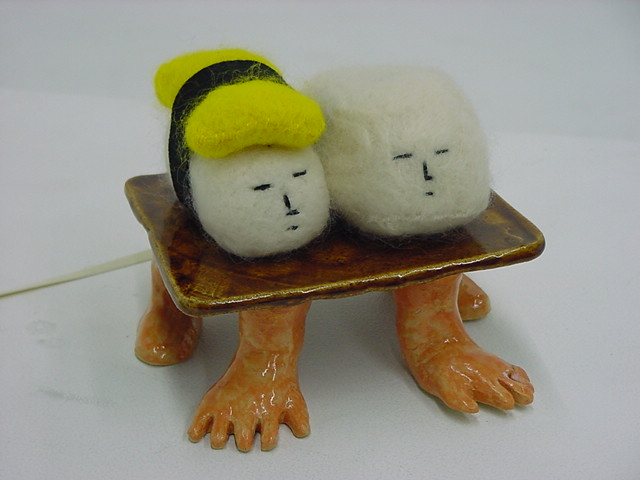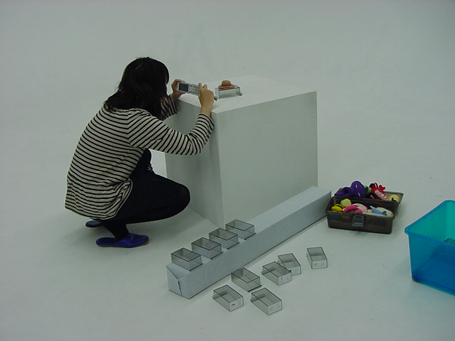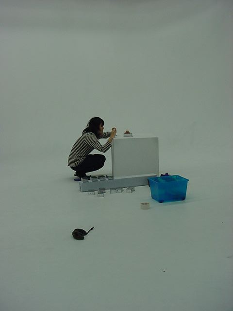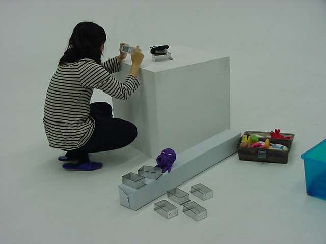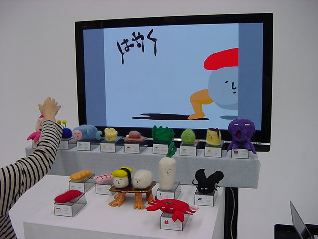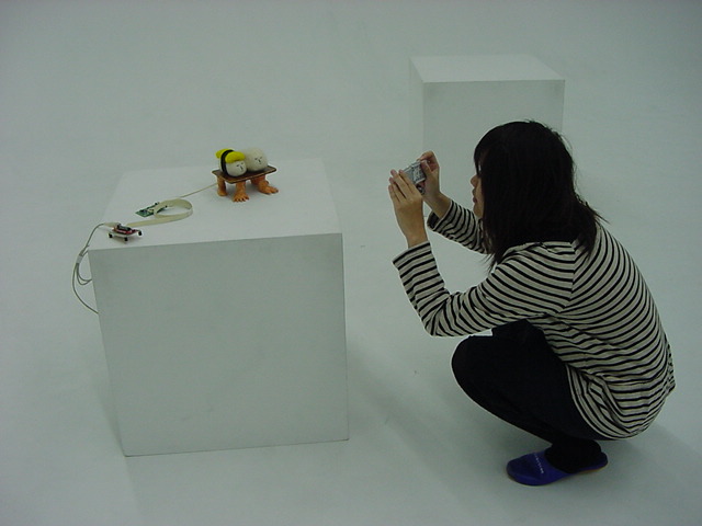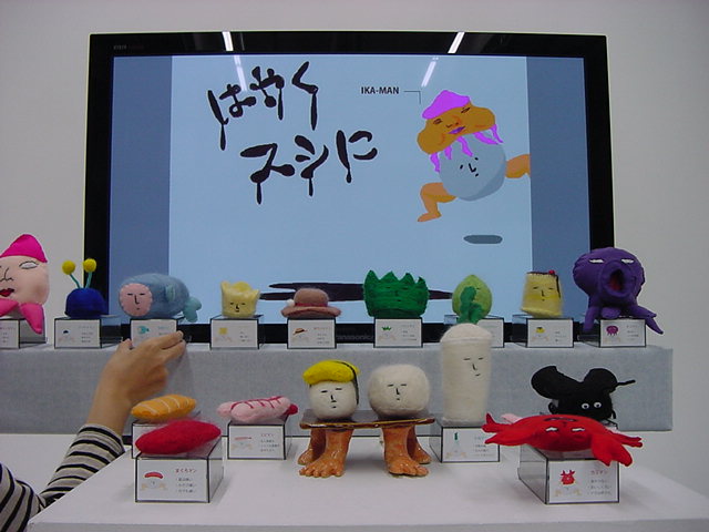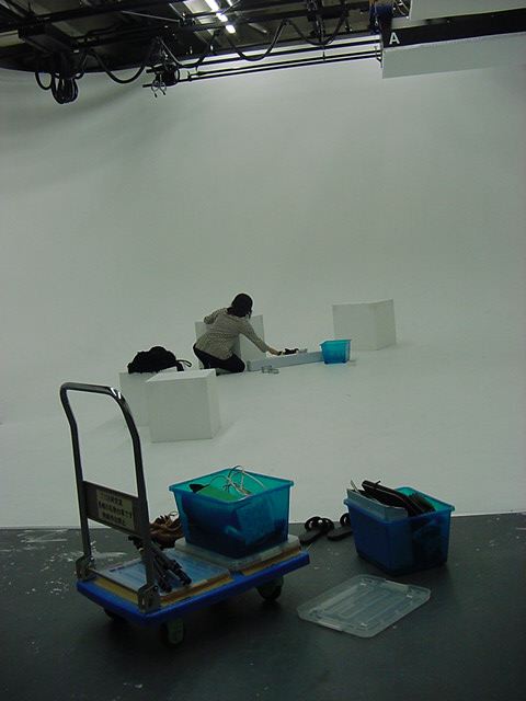 はやくスシになりたい 2009年3月 長嶋洋一 ゼミの野口さんの総合演習Iでのインスタレーション作品「はやくスシになりたい」が完成し、 撮影スタジオでビデオの記録と写真を撮りました。 これをいかに作品紹介ムービーにまとめるか、ここからが勝負です。