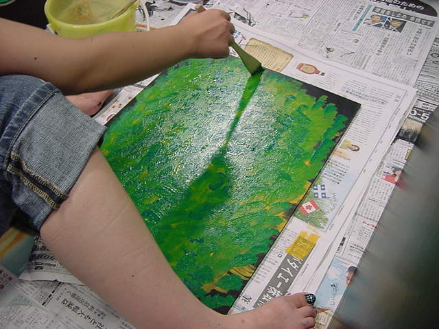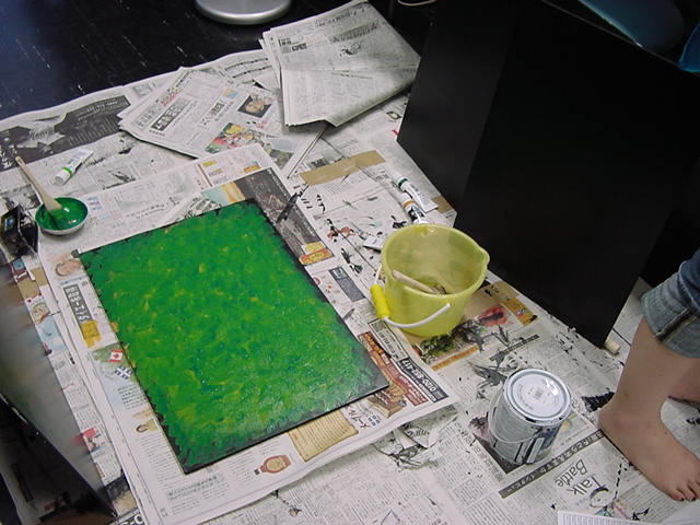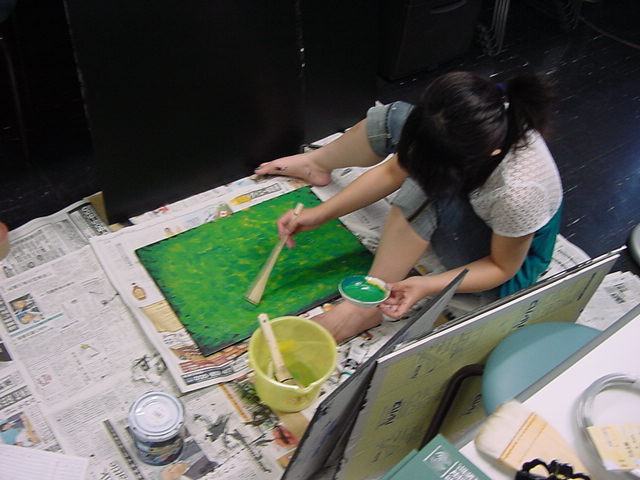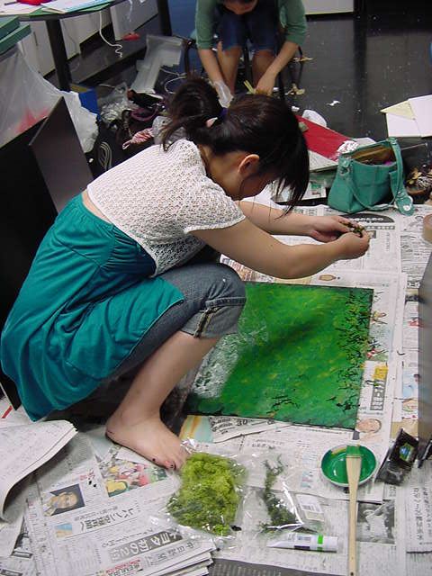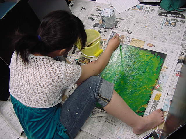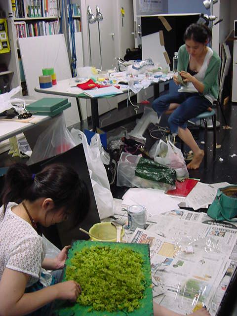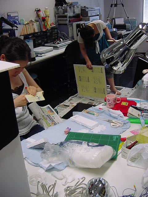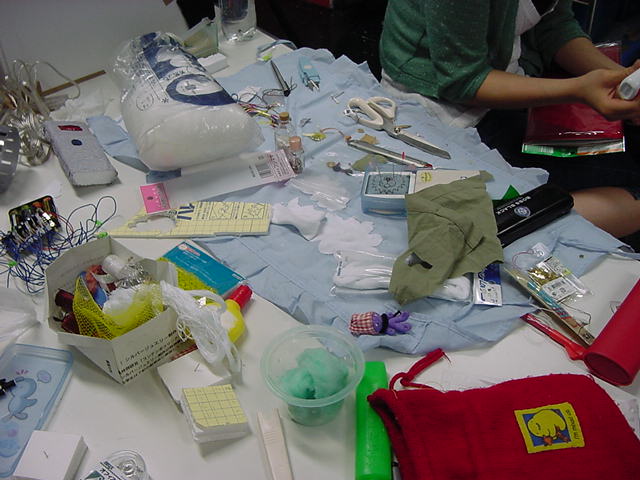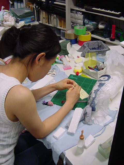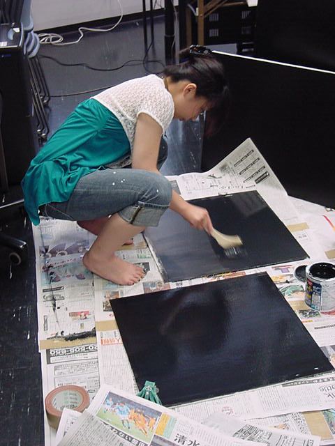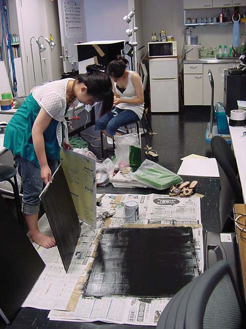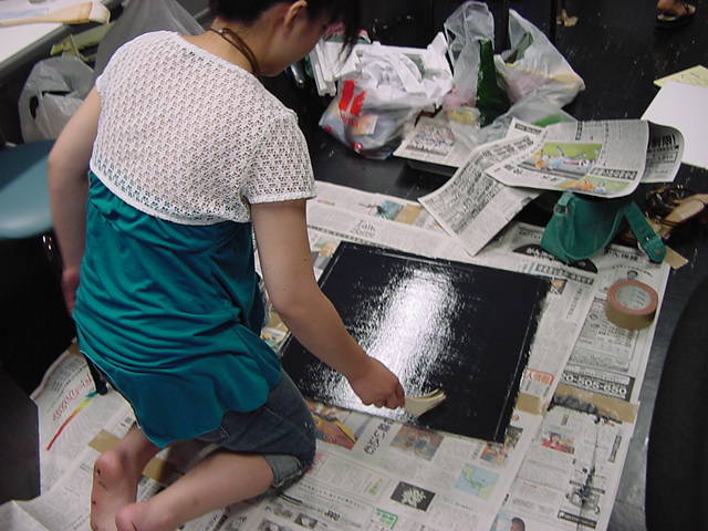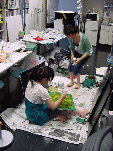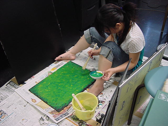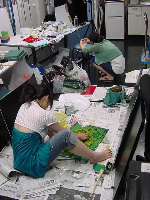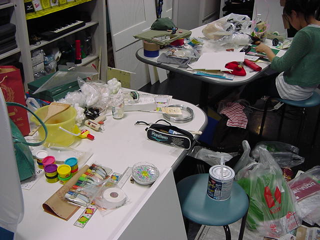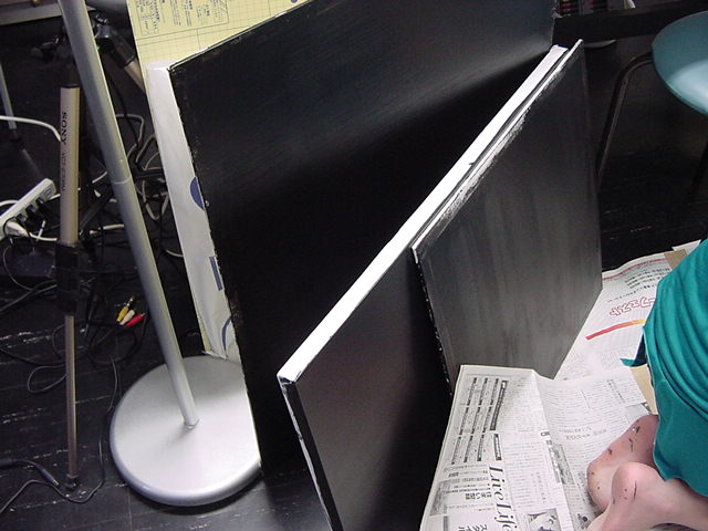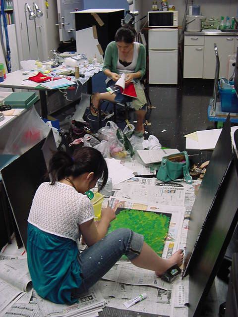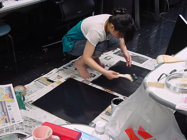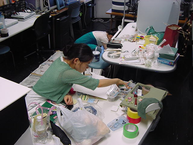 23期・虎の穴「アニメーションに挑戦」の4日目、8月15日です。お盆のバイトに捕まった石川さんは今日と明日はお休みということで、 この日は岩本さんと遠藤さんの2人で、ひたすらアニメのための準備制作に没頭しました。 午前中に100分ほど、カーマに材料の買い出しに行きました(この部分はカット)が、 9時から18時まで頑張った その模様です。 自分のこだわりアニメを作るんだ、という意欲が伝わってくる集中力です。 SUACが開学して以来、7年目に入った1106研究室ですが、 ここまで足の踏み場の無い修羅場となったのは初めてです(^_^;)。