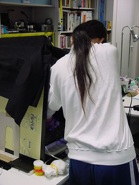 23期・虎の穴「アニメーションに挑戦」の14日目、8月31日です。 遠藤さんの撮影もいよいよ最終日、石川さんも自分のおまけショットを撮りつつ手伝いました。 朝早くから、僕はさらにコツコツと配線を進めました。 午後にはマルチメディア室で大山ゼミの映像編集レクチャーなどを行いました。 その模様です。
