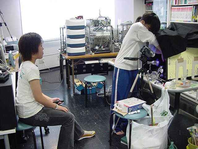 遠藤さんの撮影もいよいよ最終日、石川さんも自分のおまけショットを撮りつつ手伝いました。 朝早くから、僕はさらにコツコツと配線を進めました。 午後にはマルチメディア室で大山ゼミの映像編集レクチャーなどを行いました。 その模様です。