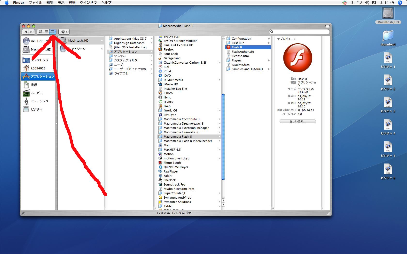 - マルチメディア室のiMacG5コンピュータでは、デスクトップ(壁紙)、ドックなど環境の設定・変更については 指示のあったことだけ実行して、他のカスタマイズは行わないで下さい。