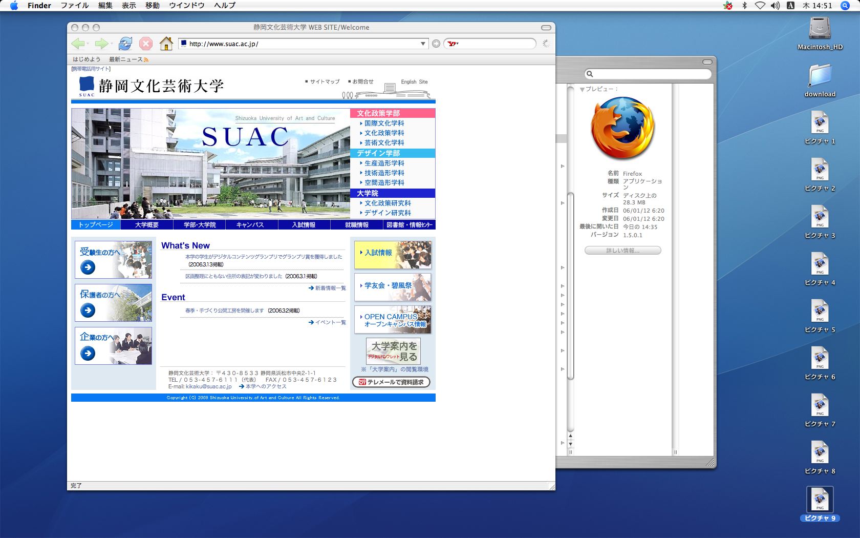 Firefoxでは、デフォルトでSUACの公式ページ(一般のインターネット向け、プロキシの外側)を開くように なっているので、SUACネットのプロキシサーバの認証を聞かれます。