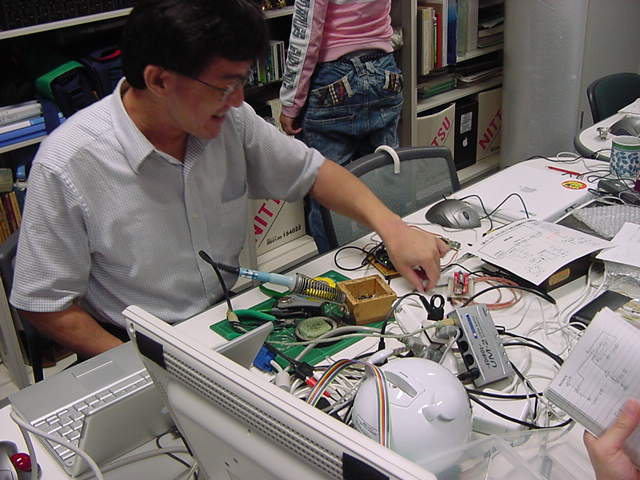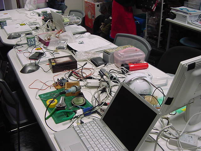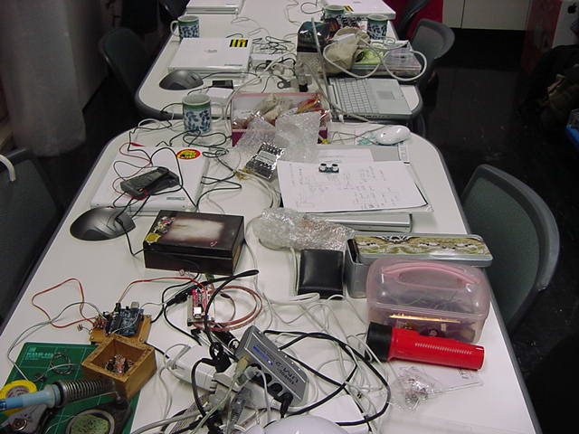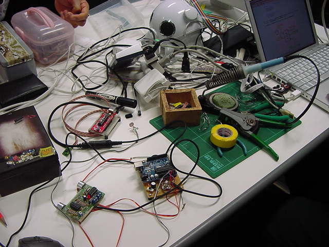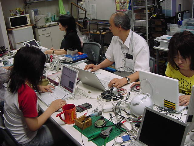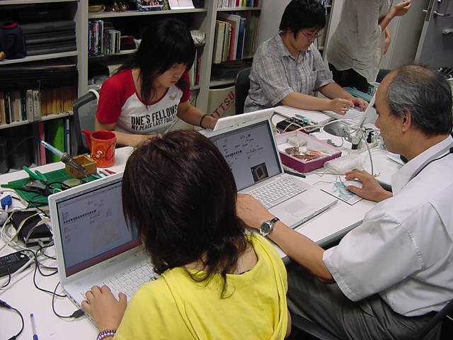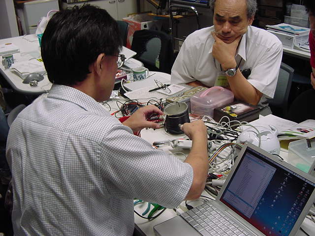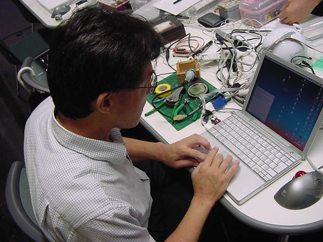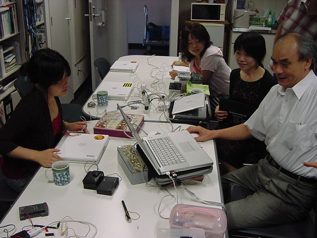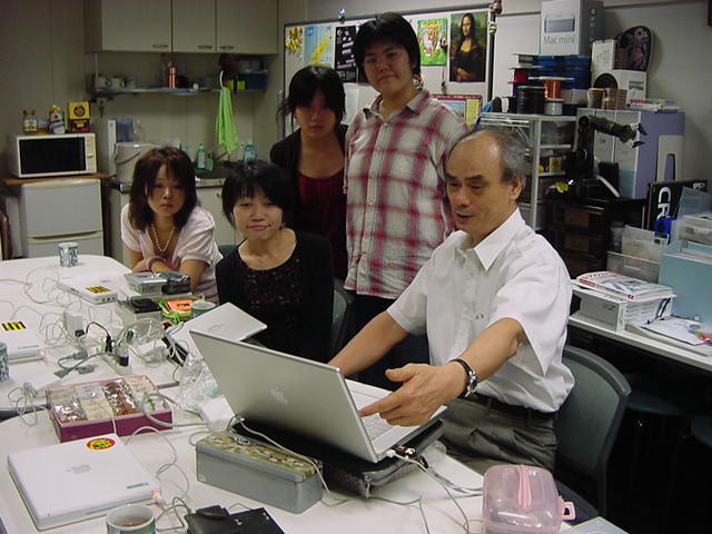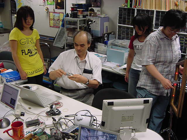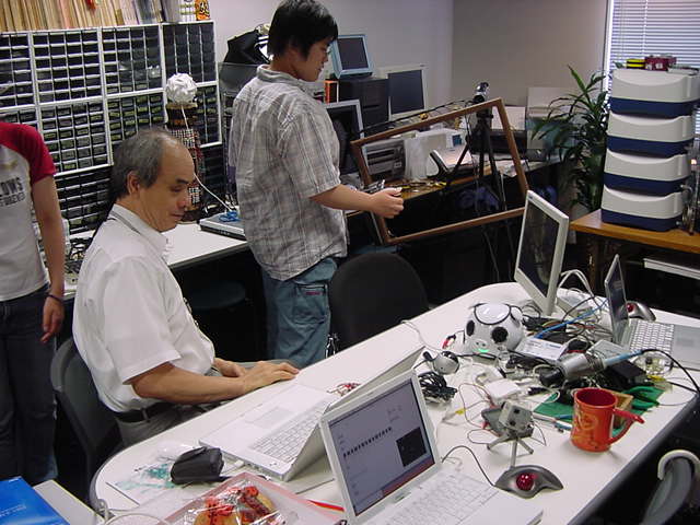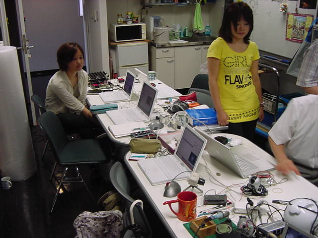 インスタレーションの勉強のため、台湾開南大学の作曲家、 Shing-Kwei教授が来日して、1106研究室に通いました。 興味を持った学生有志も参加、広島からは作曲家/演奏家の 落 先生も駆け付けました。これは、前半3日間の風景です。
