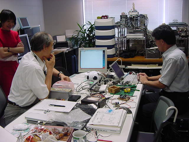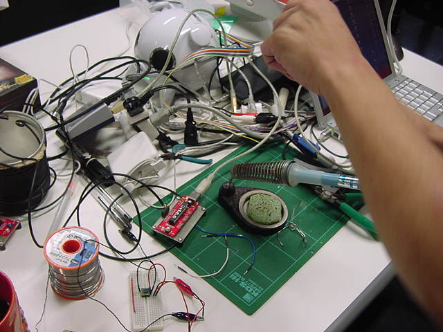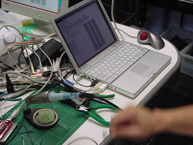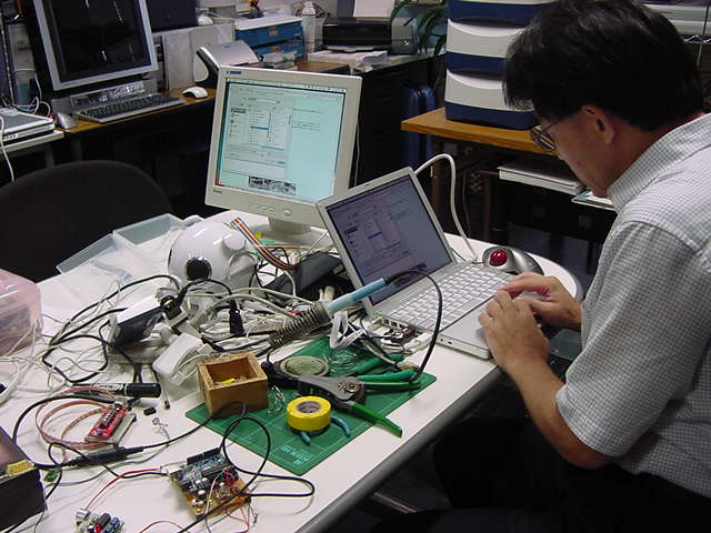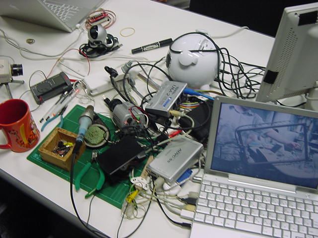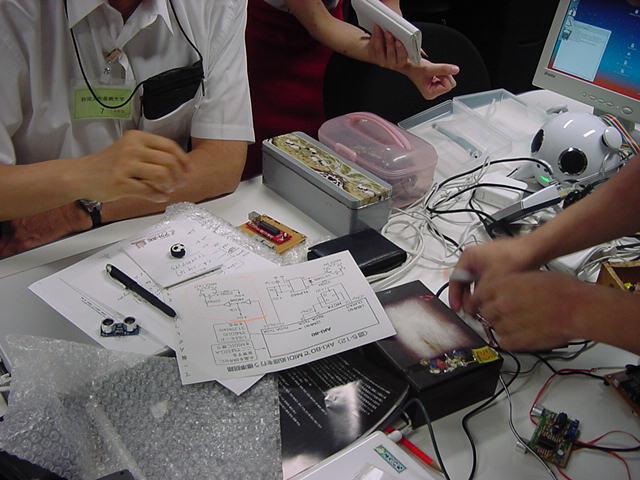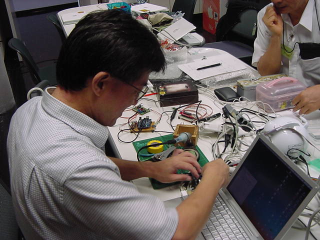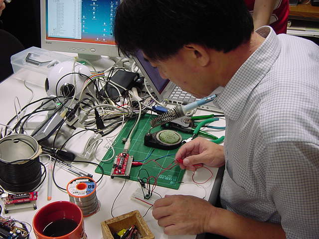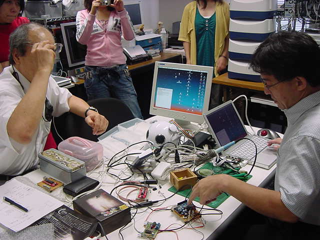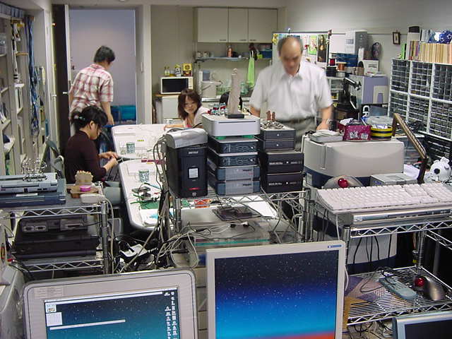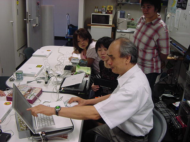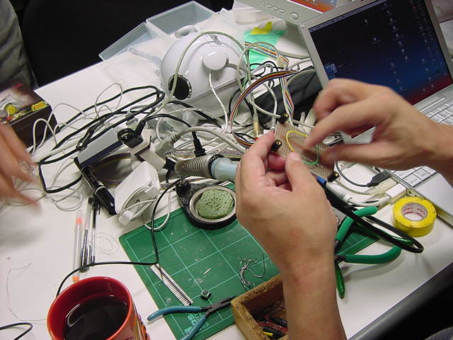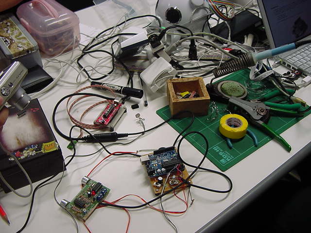 インスタレーションの勉強のため、台湾開南大学の作曲家、 Shing-Kwei教授が来日して、1106研究室に通いました。 興味を持った学生有志も参加、広島からは作曲家/演奏家の 落 先生も駆け付けました。これは、前半3日間の風景です。
