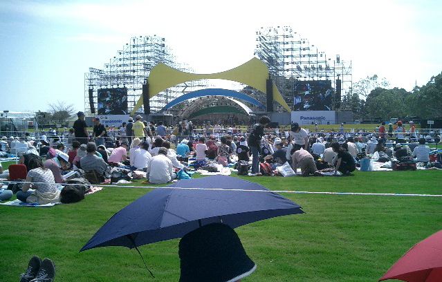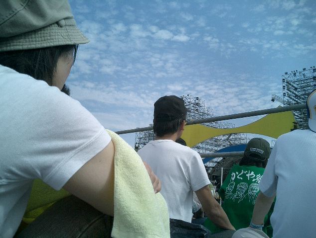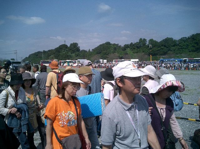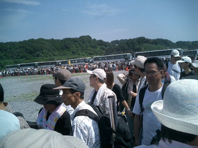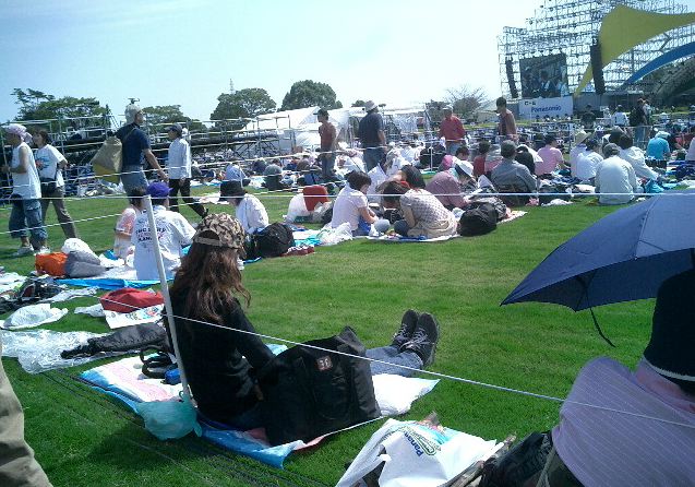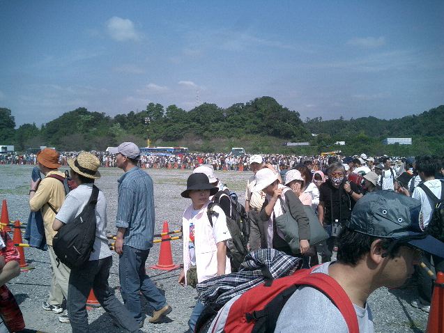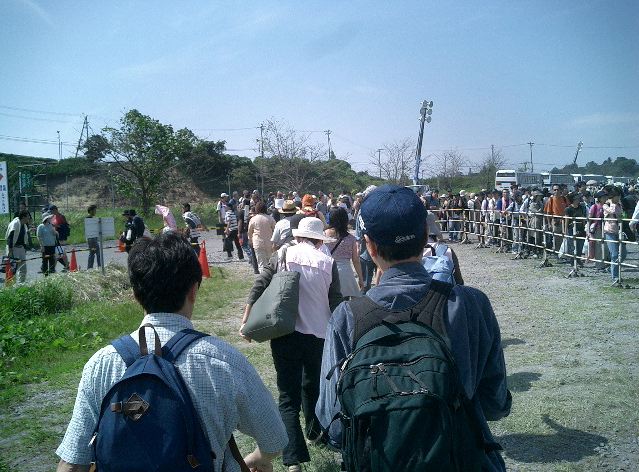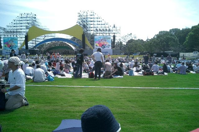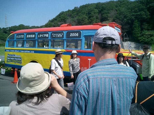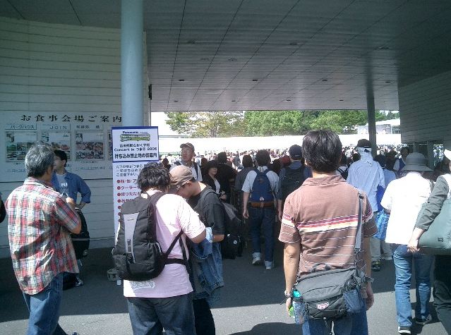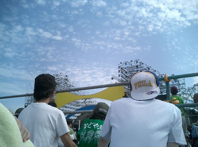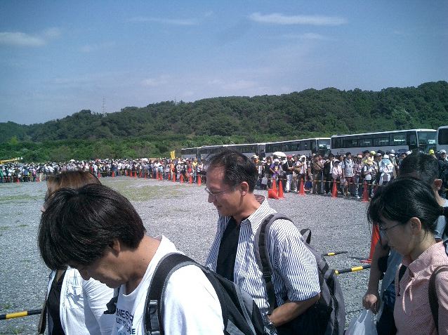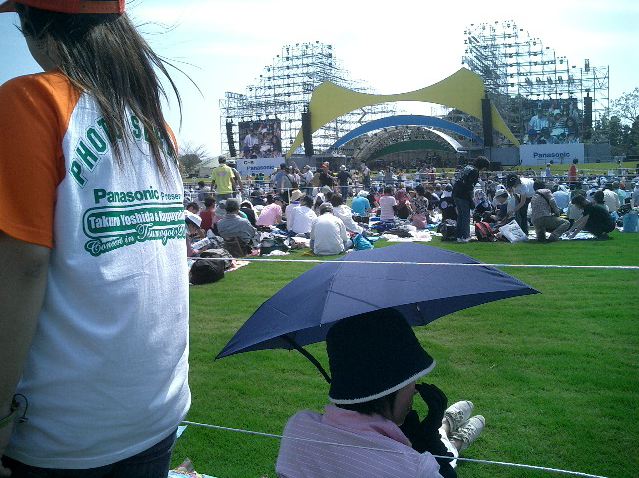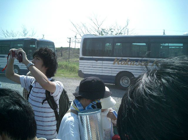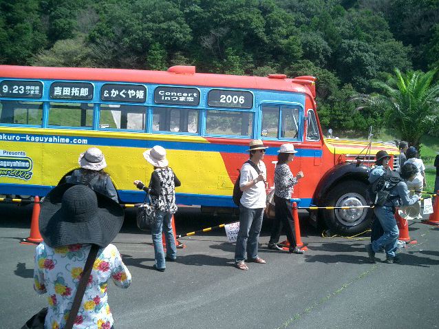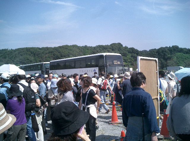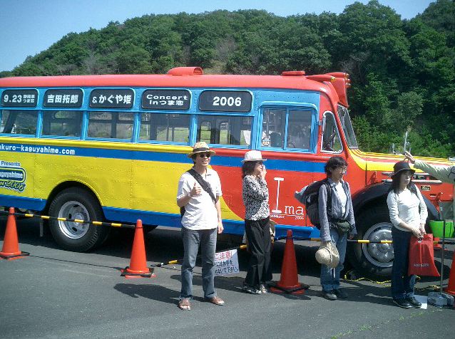 1975年の「吉田拓郎・かぐや姫 コンサートin つま恋」に行ったのは、 高校2年の17歳でした。 そして今回、31年前に水戸から掛川まで一緒に行った同窓生の高塩拓郎くんと、 若いのにこの時代の音楽が好きだという(素晴らしい!)ゼミの岡山さんと3人で、 2006年にも参加しました。浜松駅で集合、有料シャトルバスで会場に向かいました。★