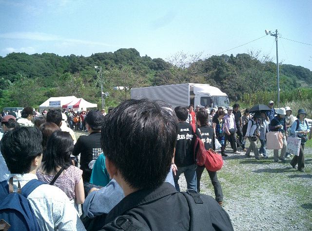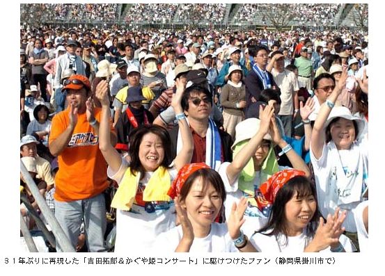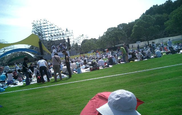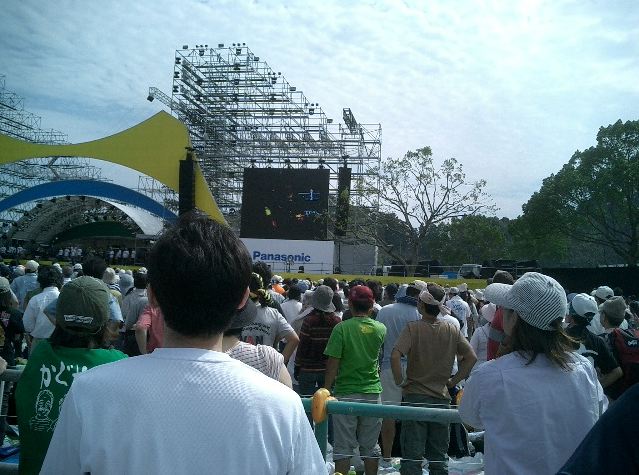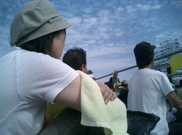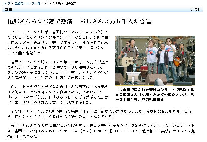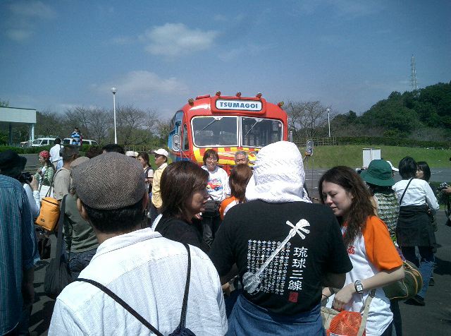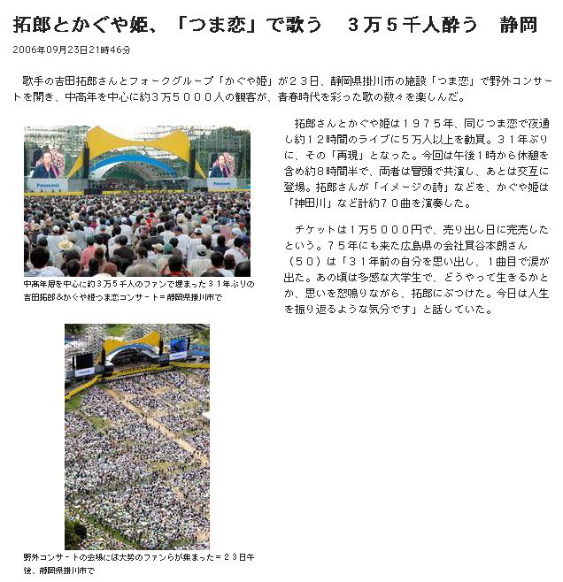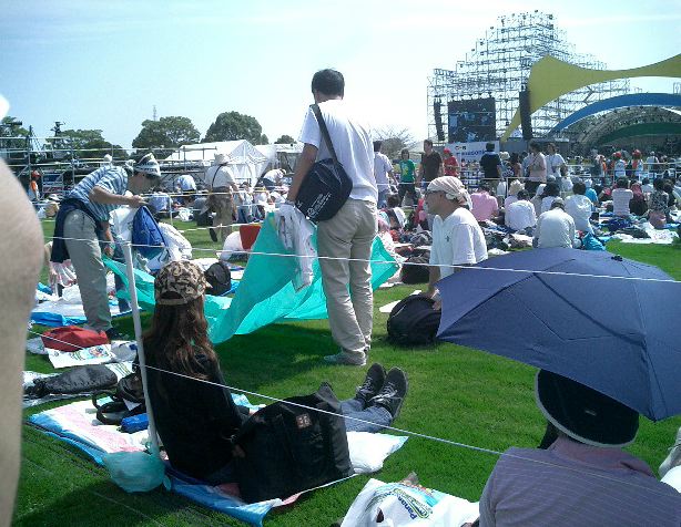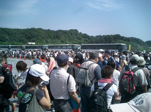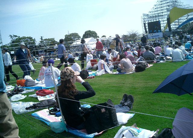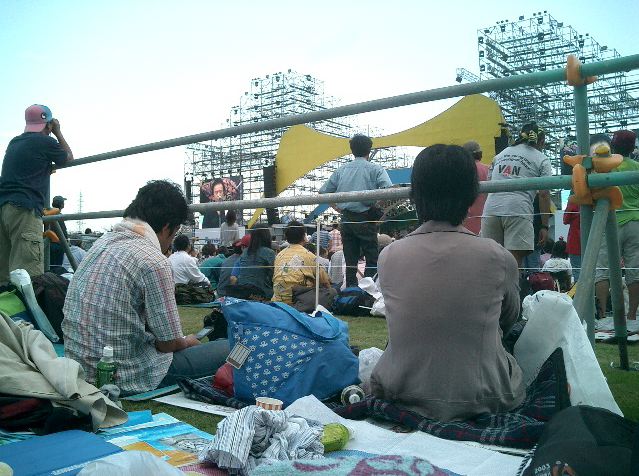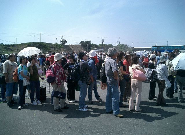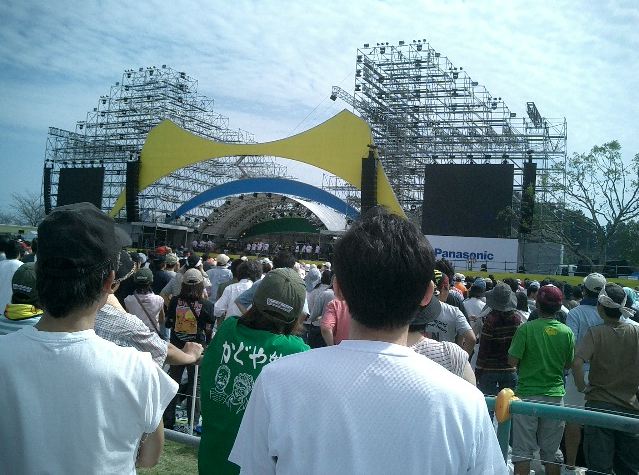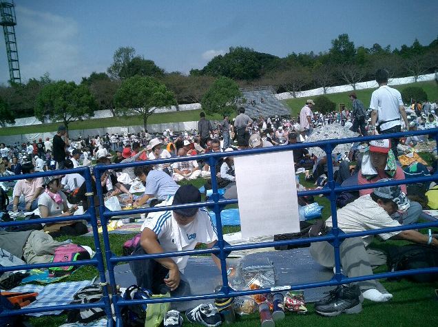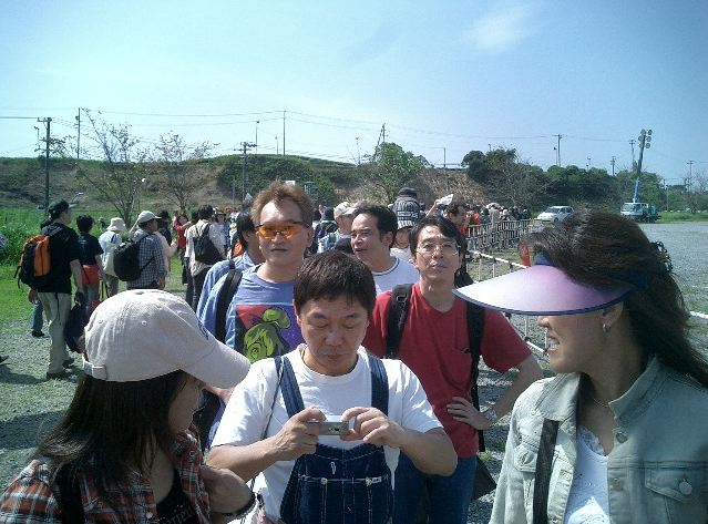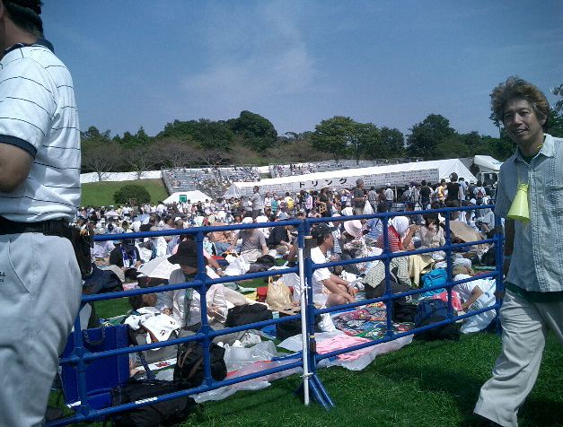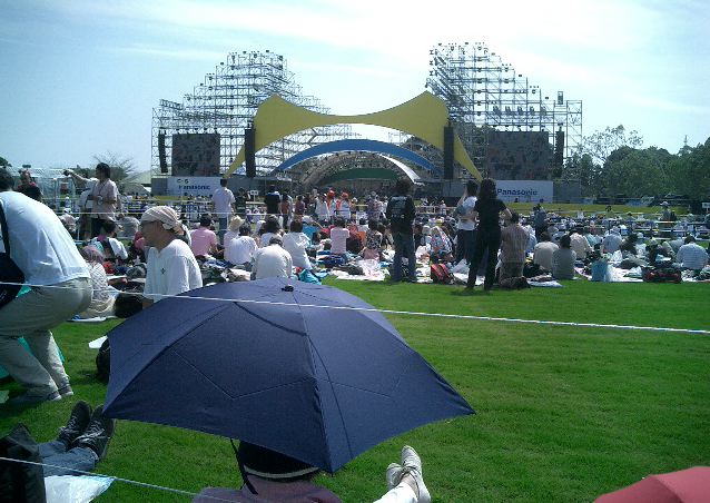 1975年の「吉田拓郎・かぐや姫 コンサートin つま恋」に行ったのは、 高校2年の17歳でした。 そして今回、31年前に水戸から掛川まで一緒に行った同窓生の高塩拓郎くんと、 若いのにこの時代の音楽が好きだという(素晴らしい!)ゼミの岡山さんと3人で、 2006年にも参加しました。浜松駅で集合、有料シャトルバスで会場に向かいました。★