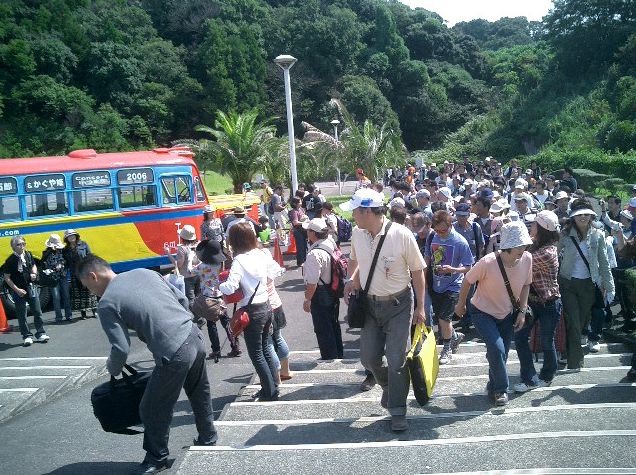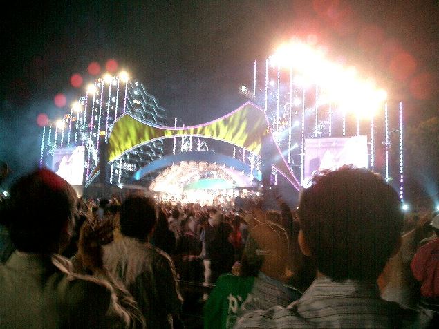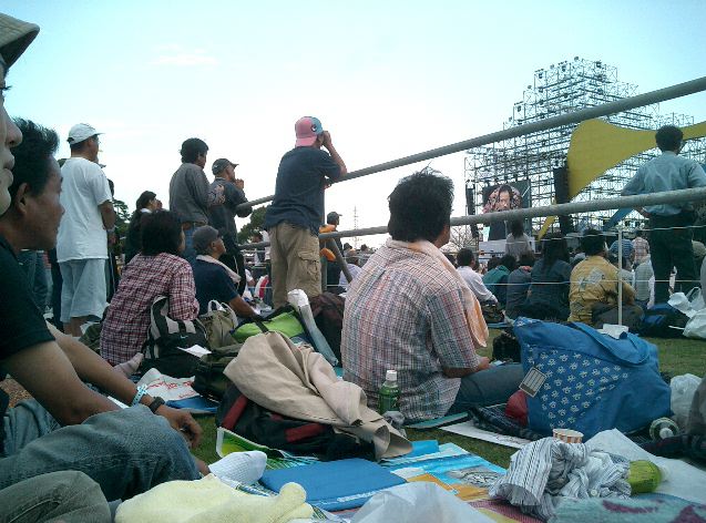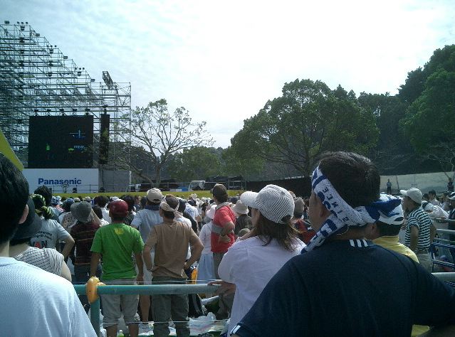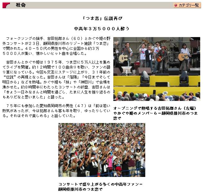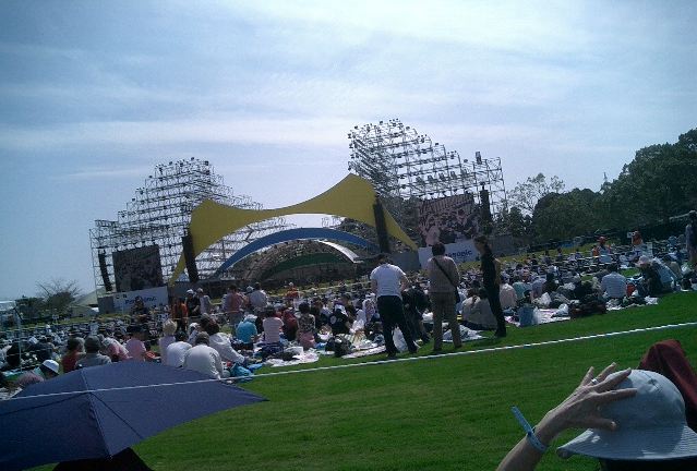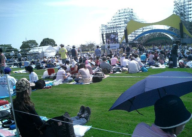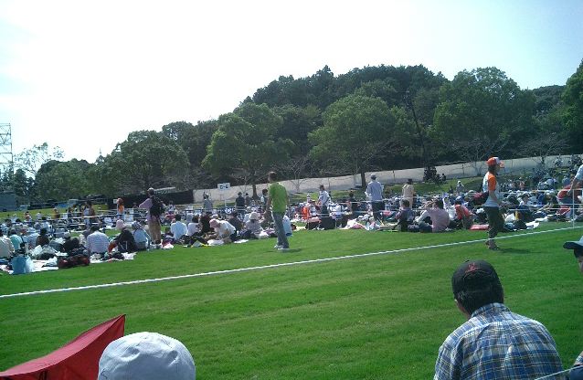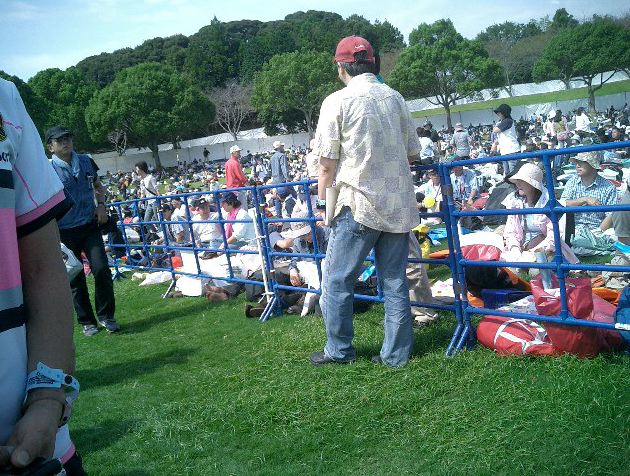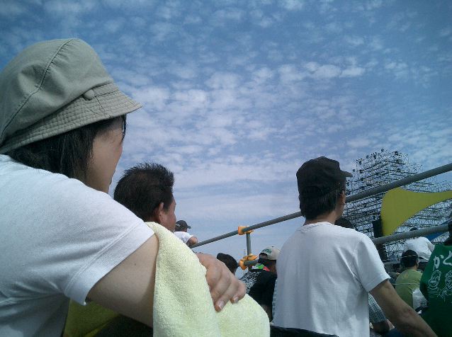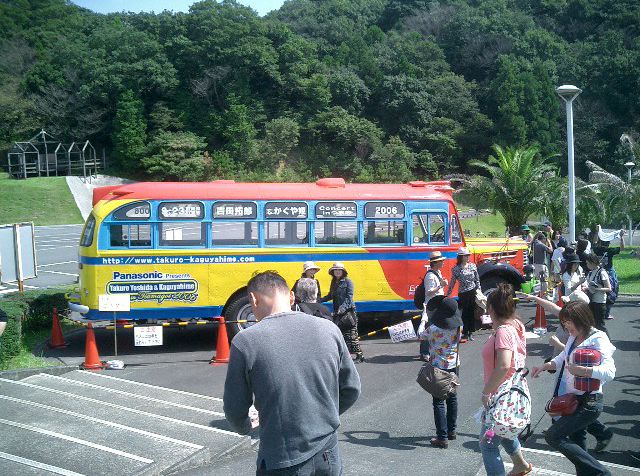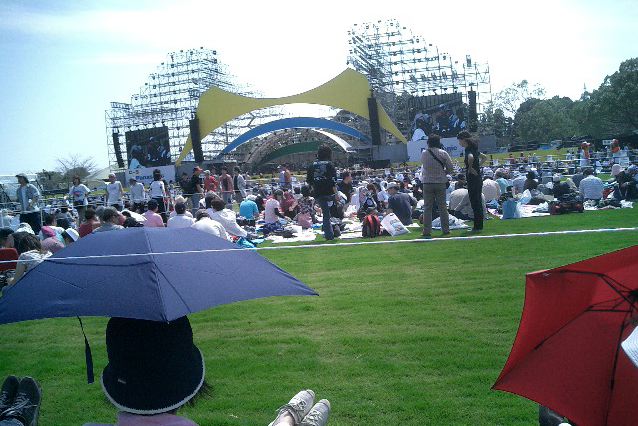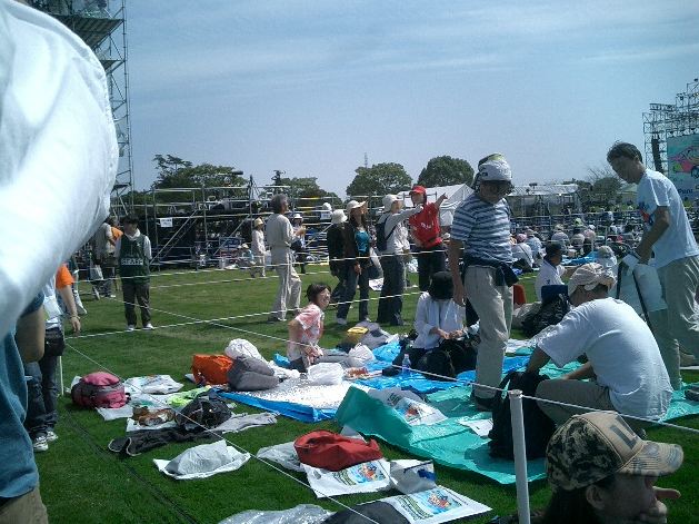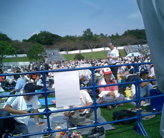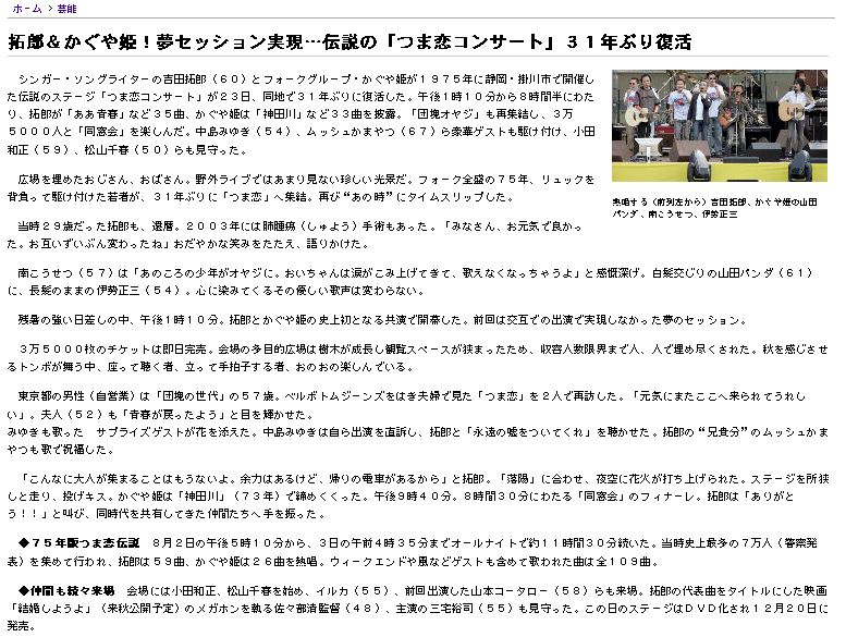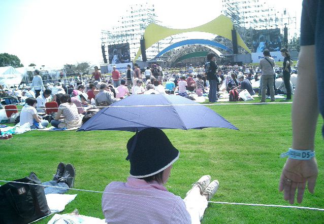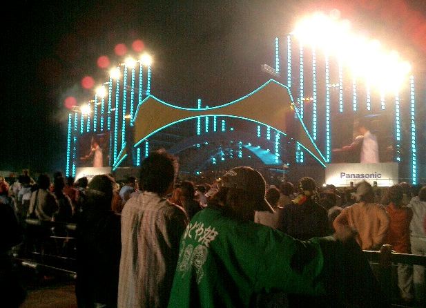 1975年の「吉田拓郎・かぐや姫 コンサートin つま恋」に行ったのは、 高校2年の17歳でした。 そして今回、31年前に水戸から掛川まで一緒に行った同窓生の高塩拓郎くんと、 若いのにこの時代の音楽が好きだという(素晴らしい!)ゼミの岡山さんと3人で、 2006年にも参加しました。浜松駅で集合、有料シャトルバスで会場に向かいました。★