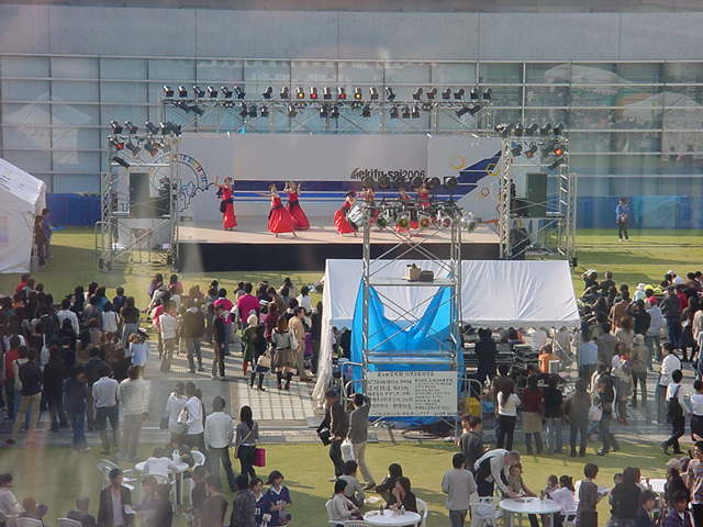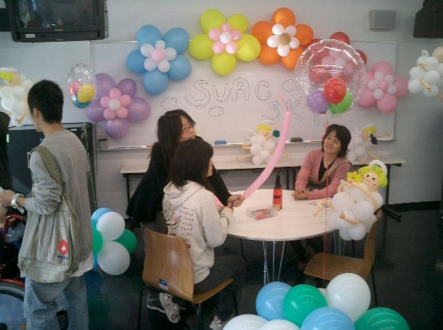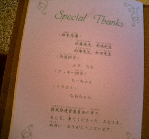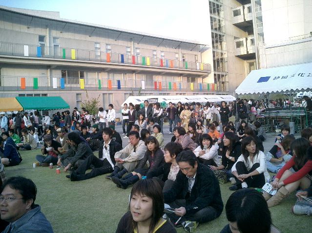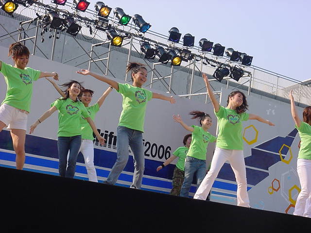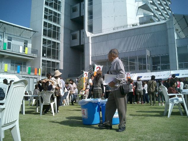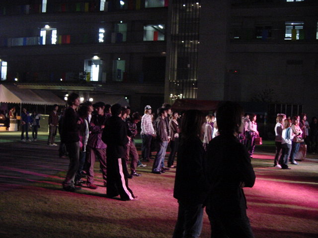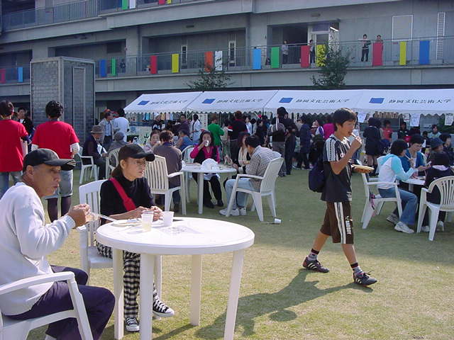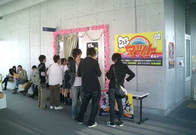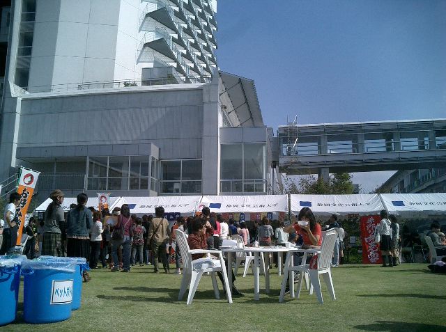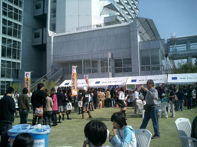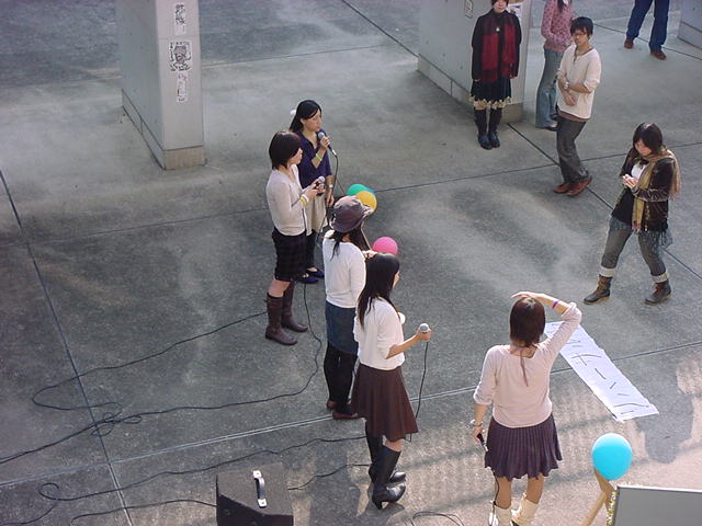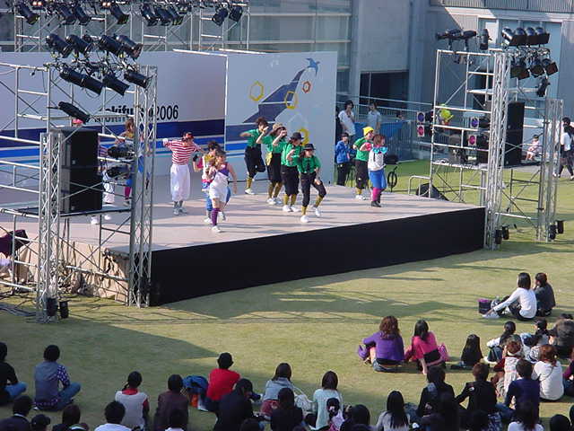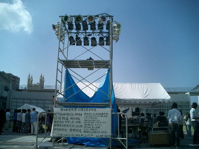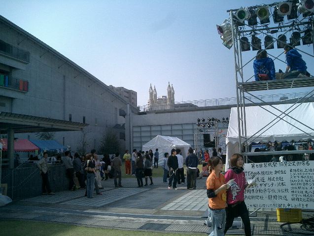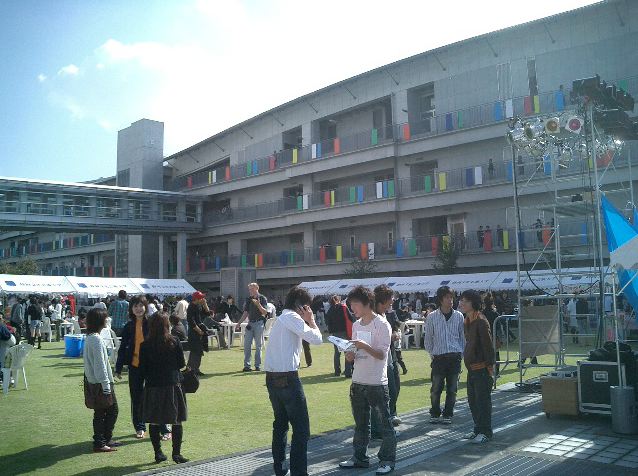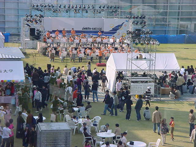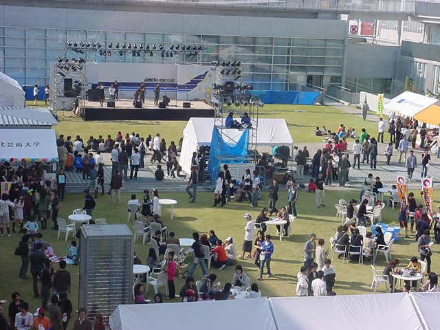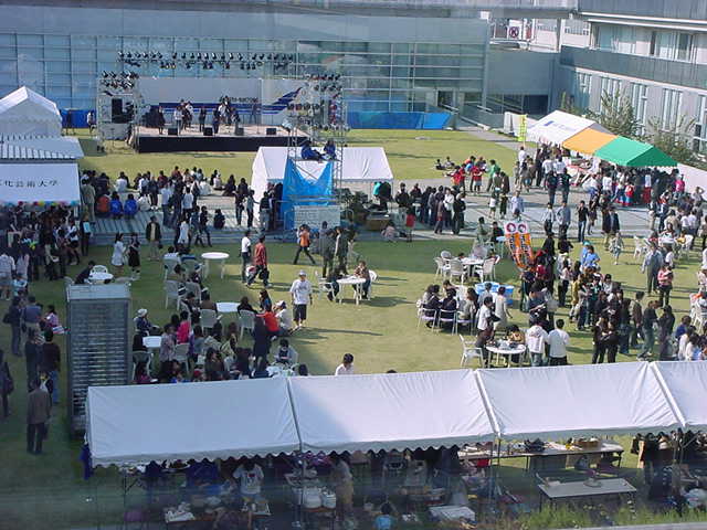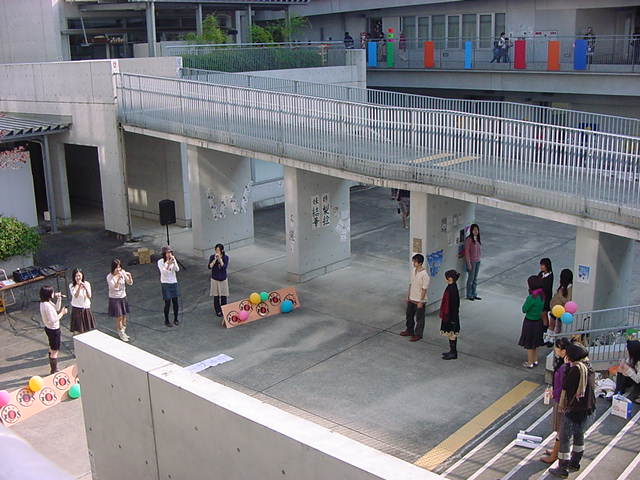 2006年の碧風祭は、開催中は好天に恵まれました。 昨今の飲酒運転撲滅運動のあおりで、毎年楽しみにしていた、 出会いの広場でのSUACビールが無くなる、という衝撃(;_;)はありましたが、 皆んな頑張ってました。 今年は11階に定点カメラを設置して、準備日の前日から4日間、 出会いの広場を15秒ごとに撮影した静止画を繋げたムービーを作ってみました。 また、MAF2006のスタッフを志願した24虎の学生が、 初めての静止画と動画の取材に挑戦しました。