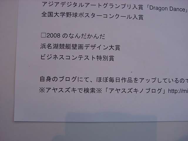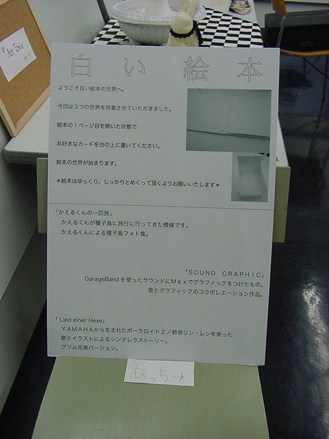 1日目 2008年10月25日(土) 2日目 2008年10月26日(日) メディア造形3回生「オトンvsオカン」 QuickTime MPEG4 91.6MB (学内only) ・・・お疲れさまでした。皆んな頑張りました。(^_^)
