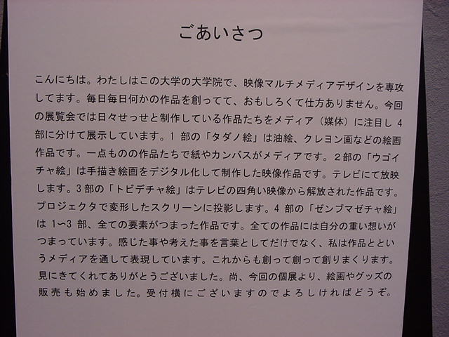 メディア造形3回生「オトンvsオカン」 QuickTime MPEG4 91.6MB (学内only) ・・・お疲れさまでした。皆んな頑張りました。(^_^)