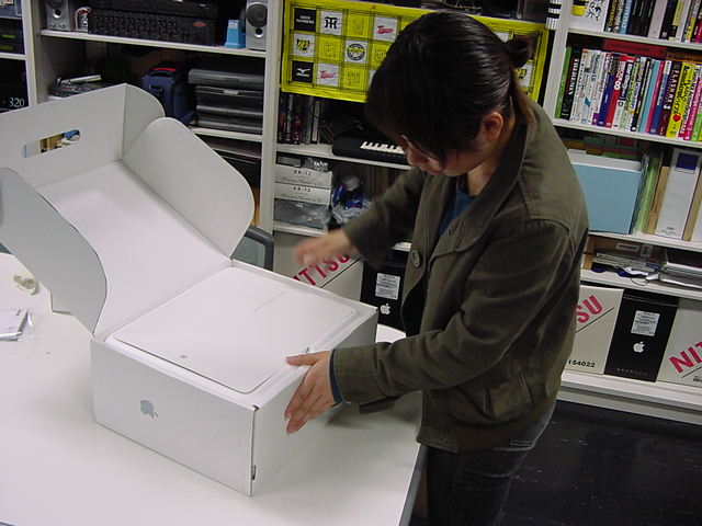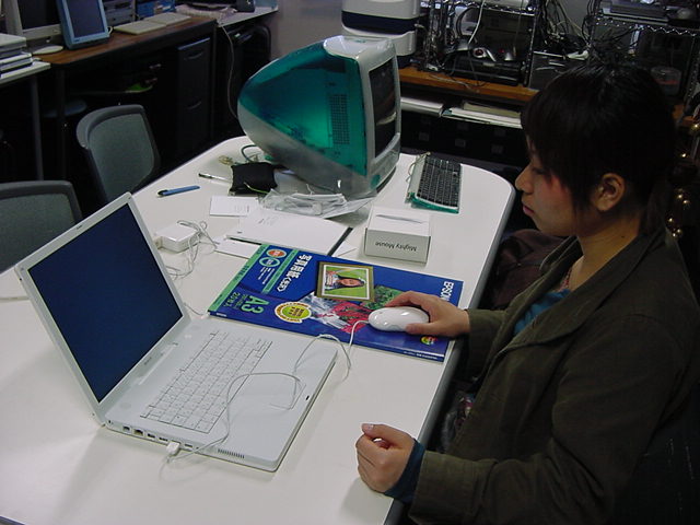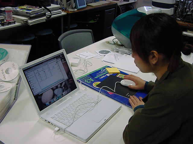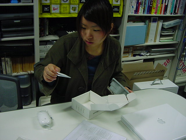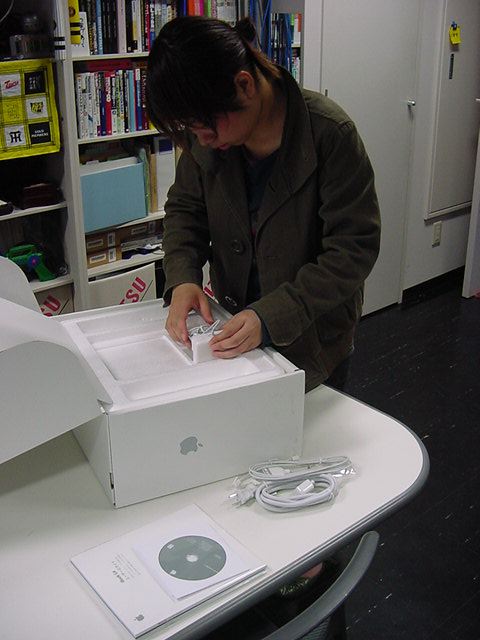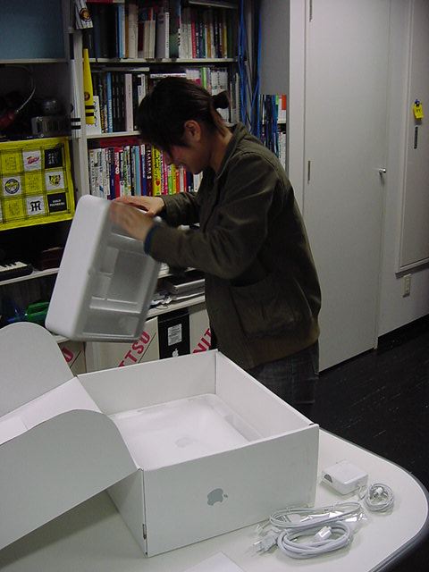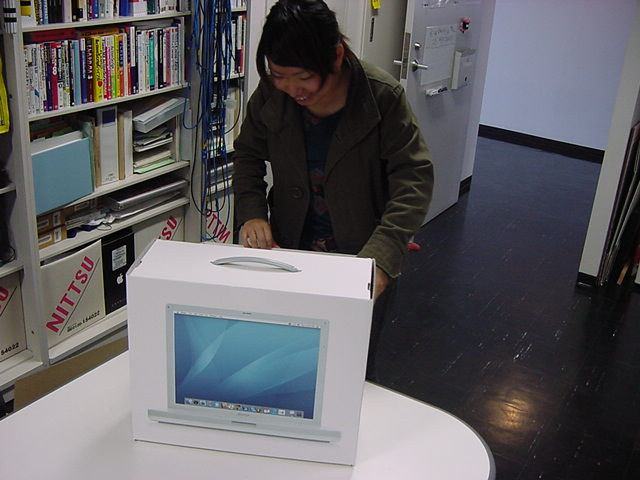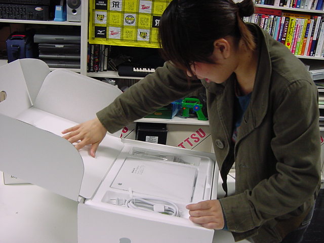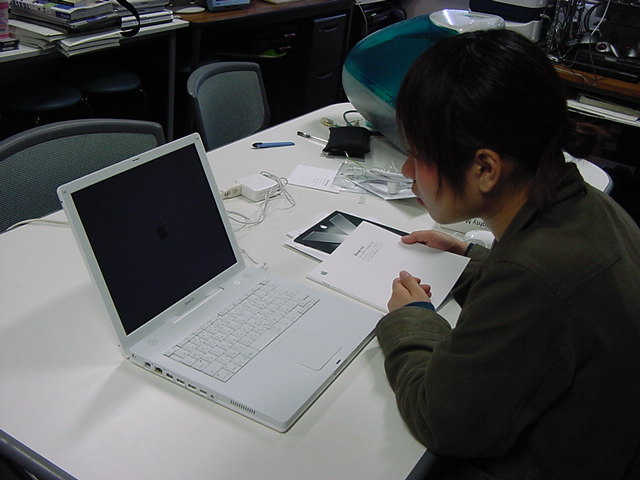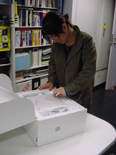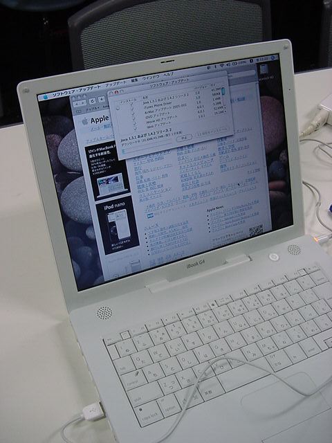 技術造形学科1回生の西沢さんが、遂に下宿用にiBookG4を買いました。 これから浜松まつりの映像編集とかに挑戦するので、 その準備も兼ねて、セットアップを1106で手伝いました。 Classicモードとかもあれこれ入れて、もうこれであとはデザインあるのみ。頑張ろう(^_^)。