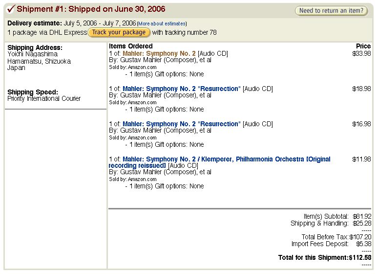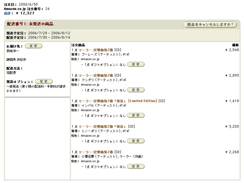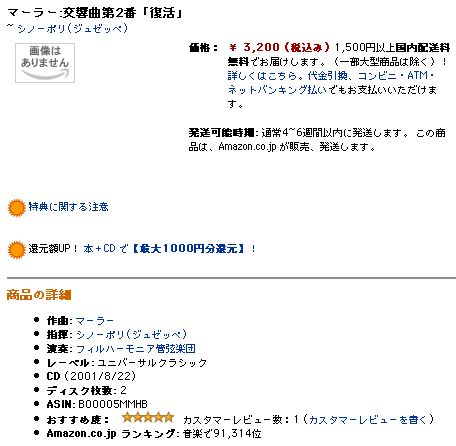 本当は、日本のアマゾンにもさらに5枚の「復活」のCDを注文したのですが、コンサートには間に合いませんでした(;_;)。 いずれ機会があれば、以下に書き足すことにします。