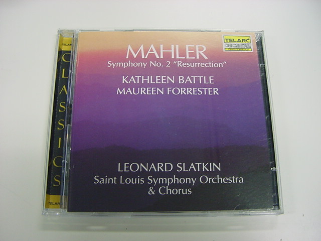 スラットキンという指揮者もよくは知らないのですが、アマゾンのコピーで「ソプラノはキャスリーン・バトル」というので つい買いました(^_^;)。もっとも「復活」においては、2人のソリストのうち主役はアルトであり、声楽のパートの中で もっともアルトに惹かれる作曲家が多い、という事実をこの作品では納得してしまいます。 CDの演奏ですが、オケはおそらく管が鳴るのかな・・・という先入観に反して、弦もなかなかに鳴って、 バランスよく小気味いい演奏、という感じでした。ちょっとまだ指揮者の若さ、あるいはアメリカ人指揮者の 色合いが出ているカンジで、ヨーロッパの陰鬱さと重厚さ、という点では不満が残りました。バーンスタイン + ニューヨークフィル