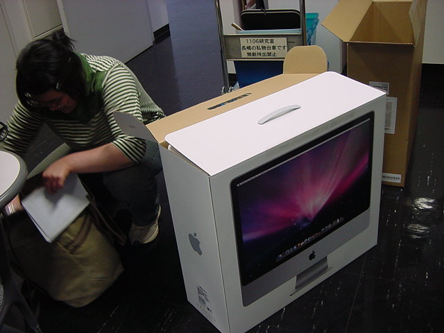 メディア造形学科2回生の山本さんが、iMacを買いました。 最新アップデートして、CS4をインストールして、 無事にセットアップは完了しました。 新しいパソコンのオーナーがまた誕生しました。(^_^) もうこれであとはデザインあるのみ。頑張ろう(^_^)。
