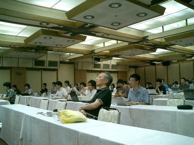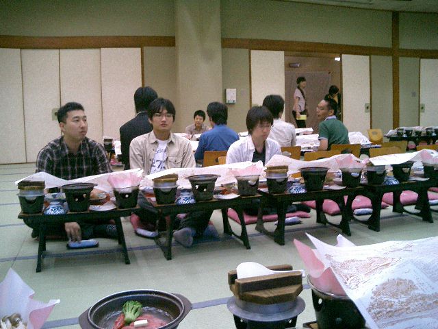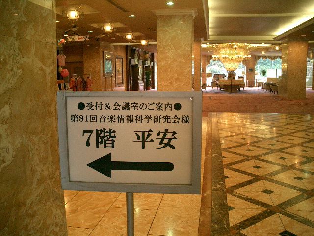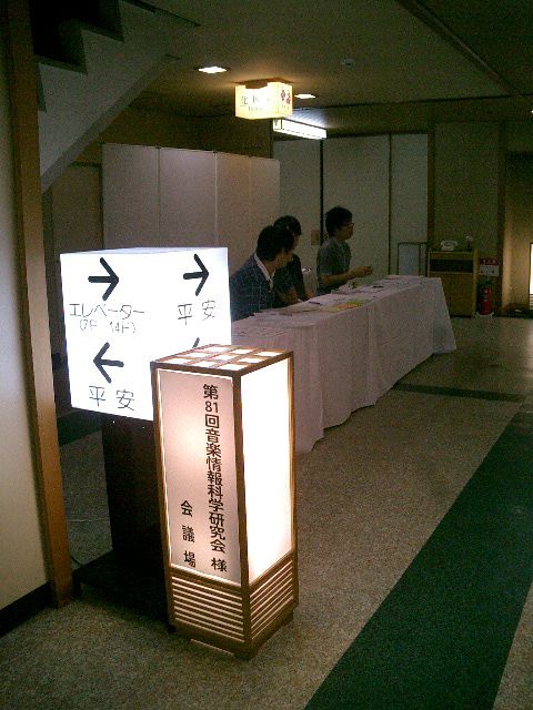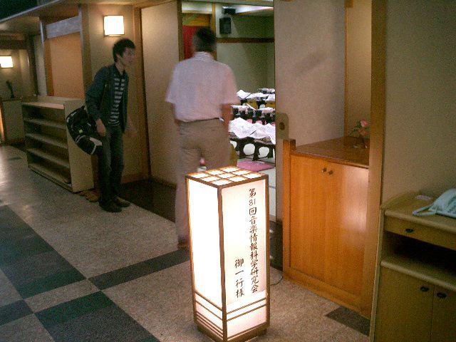音楽情報科学研究会の「夏のシンポジウム」ということで、福島県・飯坂温泉のホテル聚楽に行きました。 今回は発表は無しで座長と運営委員会だけ、さらにオープンキャンパスの準備のために3日間の日程の最初の2日だけ、 と中途半端でしたが、温泉と御馳走を楽しみました。