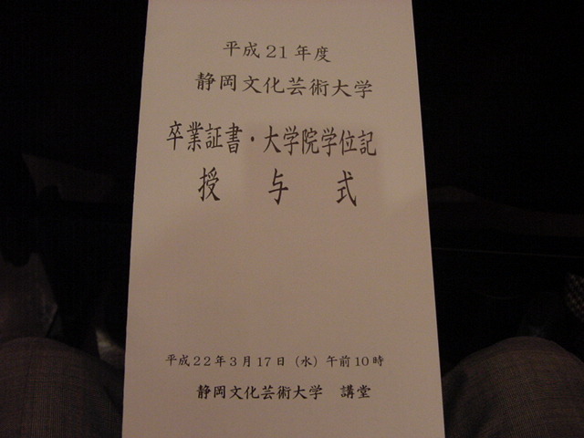 SUAC卒業式2010 2010年3月 長嶋洋一 今年もまた、オークラを上がっていく、このパターンとなりました。 後半の写真は関係者以外はパスして下さい(^_^;)。 講堂・卒業式 メディア造形学科・卒業証書授与式 出会いの広場 記念写真撮影 1次会 ホテルオークラ4階 2次会 ホテルオークラ30階 3次会 ホテルオークラ42階スイート古田ルーム ちょっと恐い写真(^_^;) ちょっと恐い写真(^_^;) ちょっと恐い写真(^_^;)