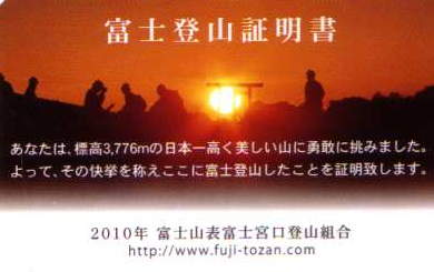 午前2時には明かりが点灯して、皆んなゴソゴソと準備を始めます。 お弁当を受け取り、暖かいボタージュスープを飲んで、2時40分に9合目を出発しました。 ヘッドランプでの夜間登山なので写真はまったくありませんが、9合5勺の「胸突山荘」を経て、 午前4時半ちょっと前に、山頂・10合目に到着しました。 ★ ★ ★ ★