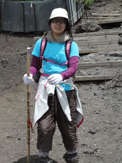 12時半あたりに新5合目を出発して、25分ほどで6合目に。ここには2件の山小屋がありました。 学生は2人とも静岡県民ですが富士登山は初めてということで、5合目で登山杖を仕入れて、 ここから山荘ごとに焼き印を入れてもらいました。 6合目ではペットボトル500ccはまだ300円ですが、7合目から上では全て(水でも)500円となります。 ★ ★ ★ ★