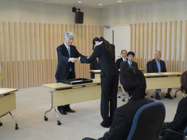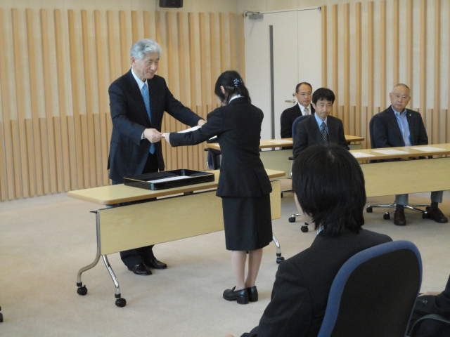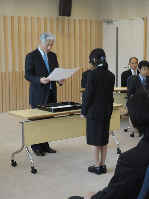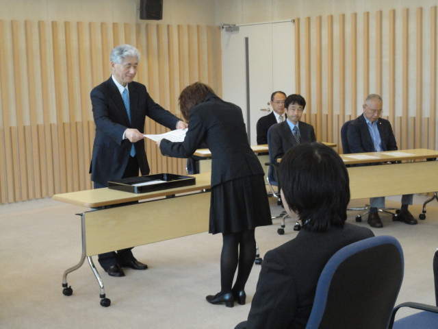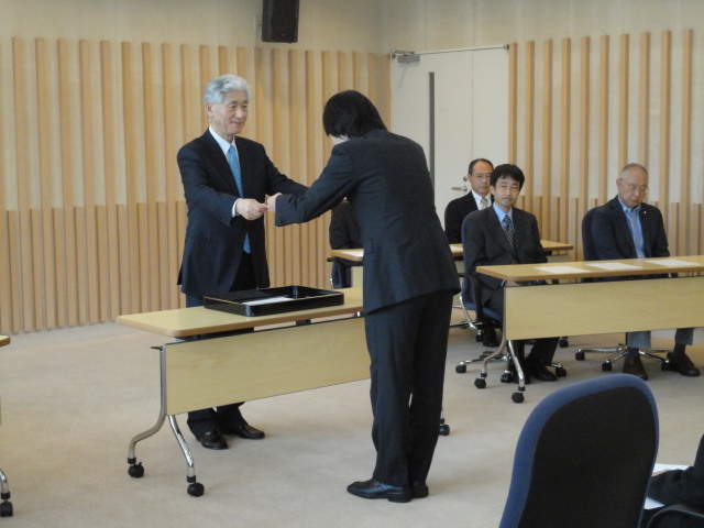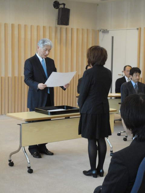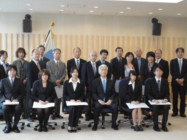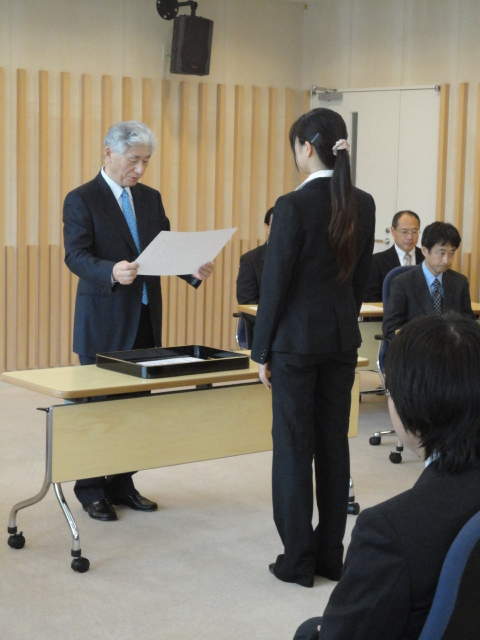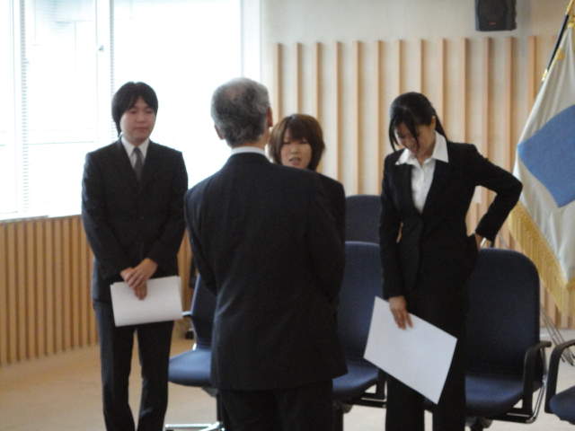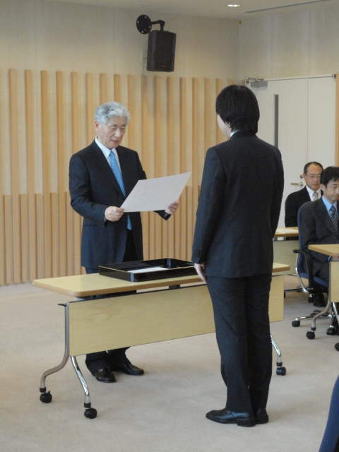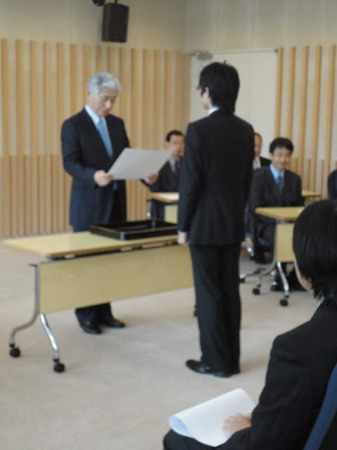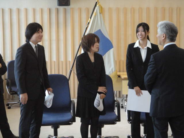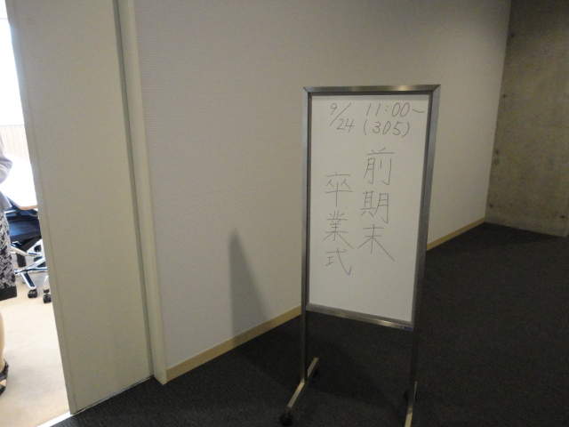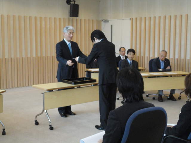 2010年9月24日、 普段、学生が入ることもないデザイン学部教授会用の会議室で、 個々の事情(^_^;)で半年遅れた卒業式が挙行され、 技術造形学科からも1人が卒業していきました。