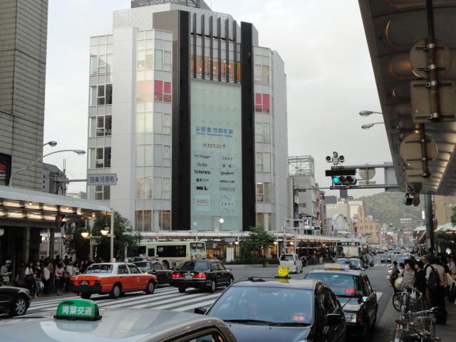 研究会が終わったところで速攻で地下鉄に戻り、四条烏丸で地上に出ました。 ここからプチ同窓会の待ち合わせ場所の四条河原町まで、懐かしい四条通りを散歩しました。 街のカンジは、いろいろ変わっているものの、まぁ変わらないと言えば変わらない京都でした。 ただし四条河原町にあった阪急百貨店がマルイになってました(^_^;)。