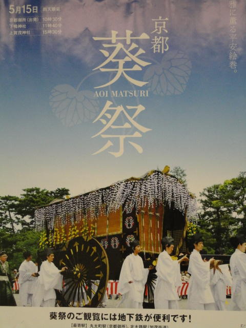 四条から下がったところの木屋町にある洒落たレストランでの夕食です。 このお店は2-3年前までは会員制(一見さんお断り)だったので、 リーマンショックのお陰でこのような素敵な夕食が楽しめました。 ホテルに帰る京都駅の地下通路には「葵祭」のポスターがありました。