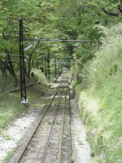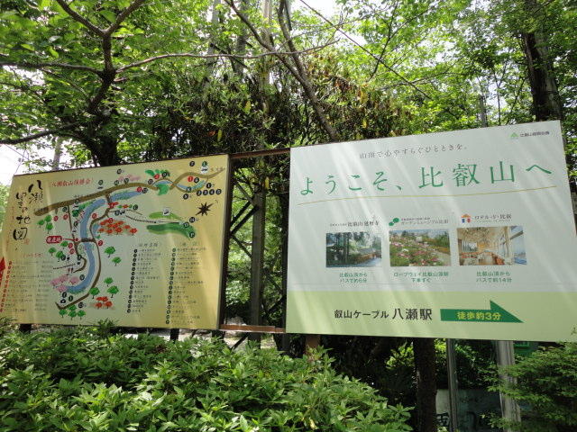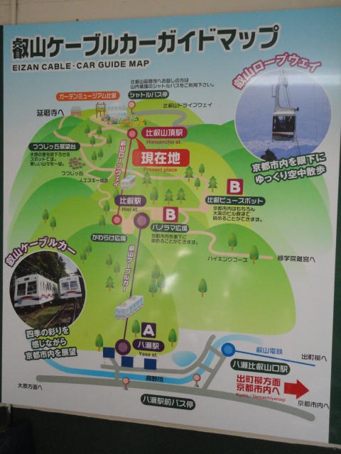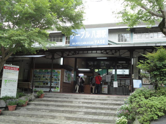 そして元田中の駅から叡電に乗りました。 その時点ではまた鞍馬山に行って、貴船まで下りてくるつもりでしたが、フト、八瀬遊園から比叡山頂に行こう、と気が変わり、 宝ケ池で降りて、乗り換えして八瀬に行きました。 かつては「八瀬遊園」と言っていたのですが、なんと比叡山頂の遊園地は潰れて(^_^;)、ガーデンミュージアムとかになっていました。