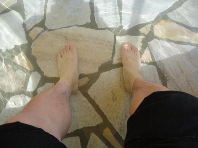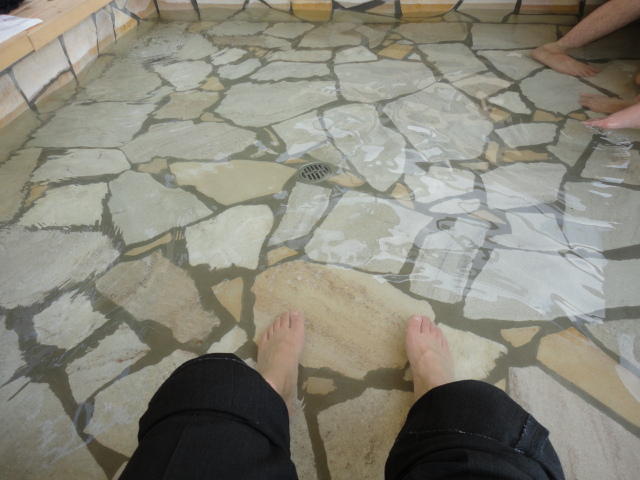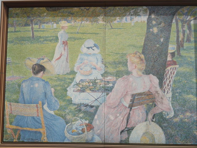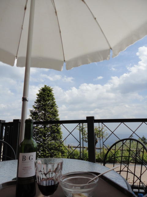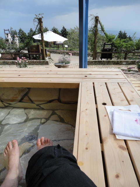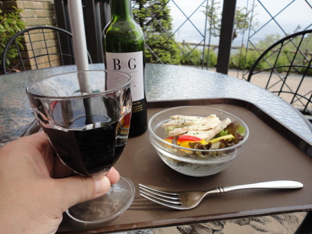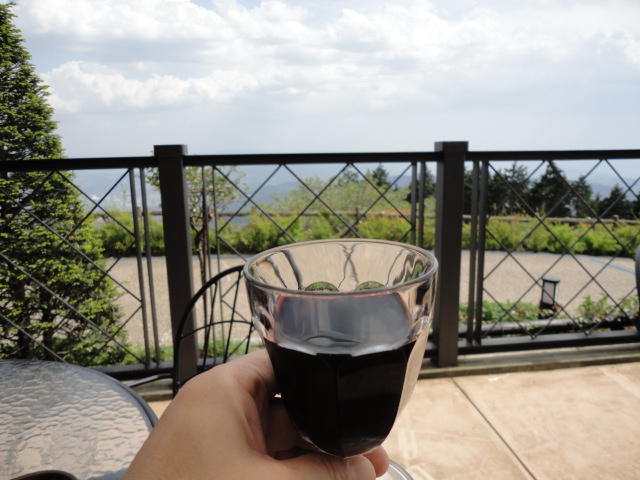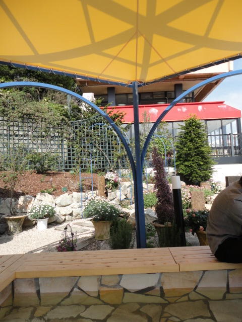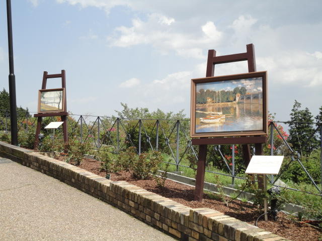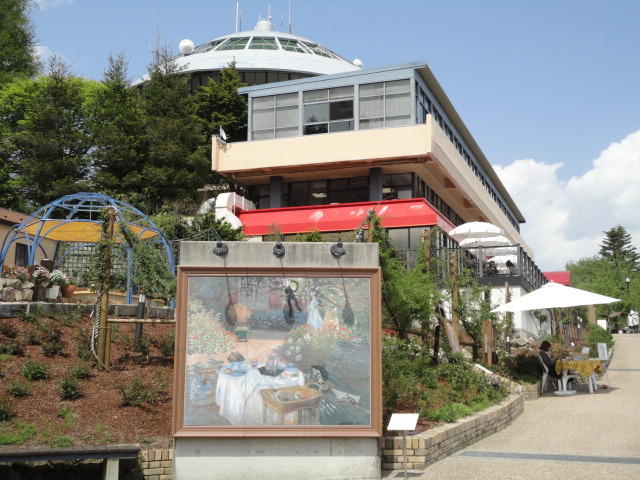 かつて「比叡山頂遊園地」だったところは、モネだのゴッホだのの絵の立っている、なんだか意味不明のミュージアムでした。 かつてお化け屋敷だった展望台の建物はそのまま流用している模様でした。 あちこち園内を歩くこともなく、カフェでまったりして、足湯に入って、ただ、のんびりしました。