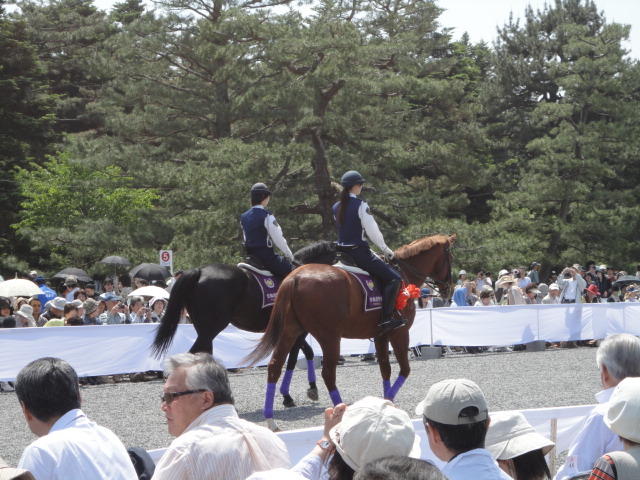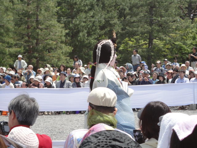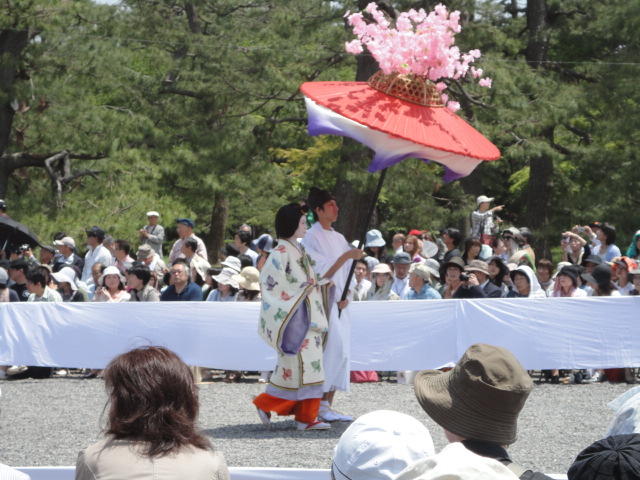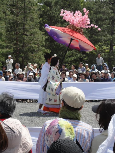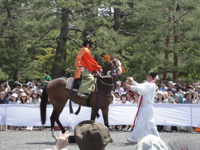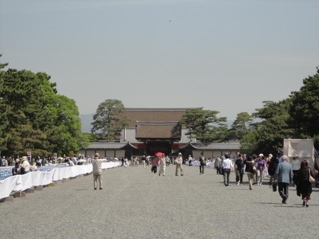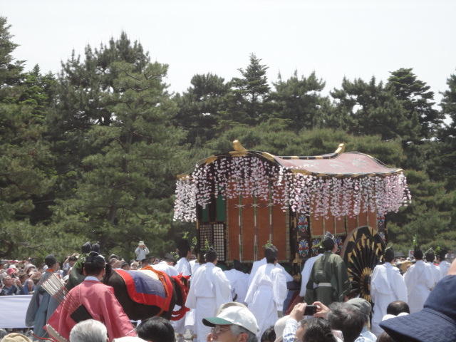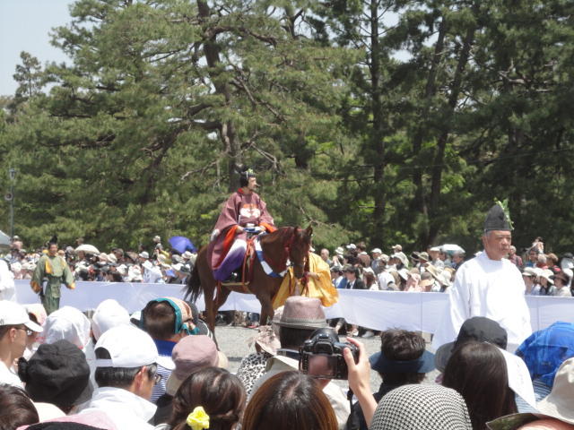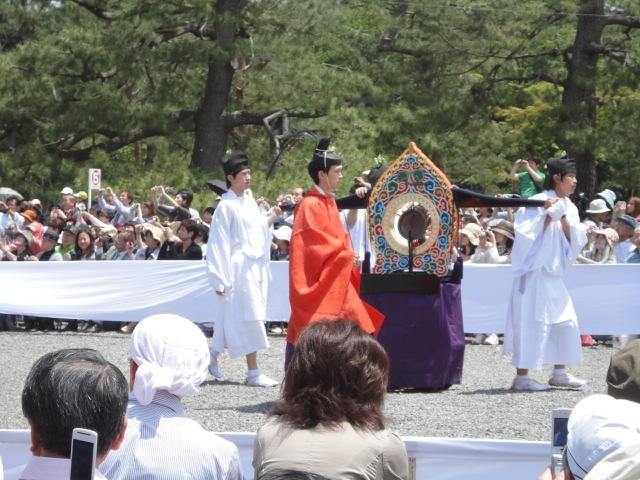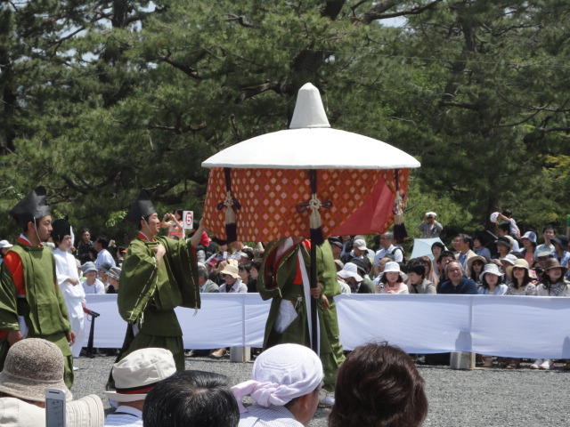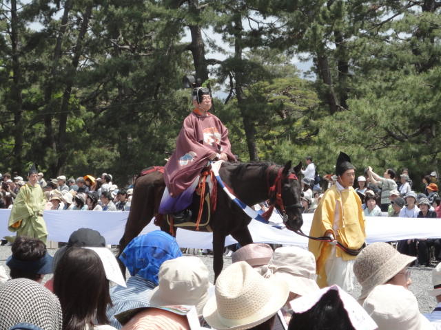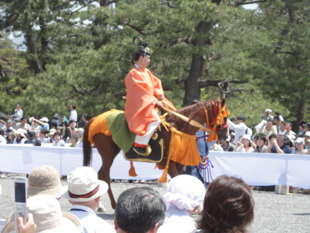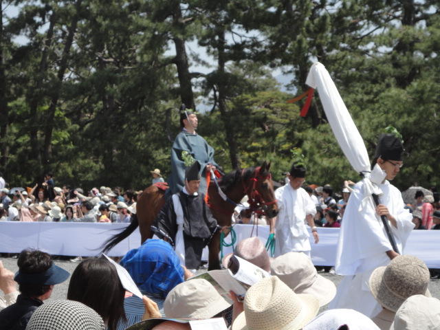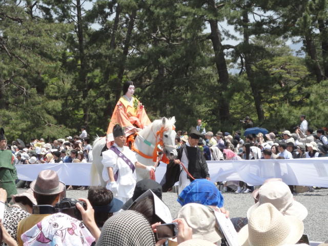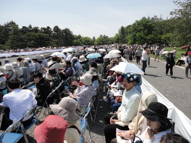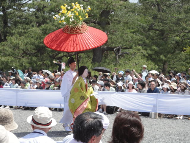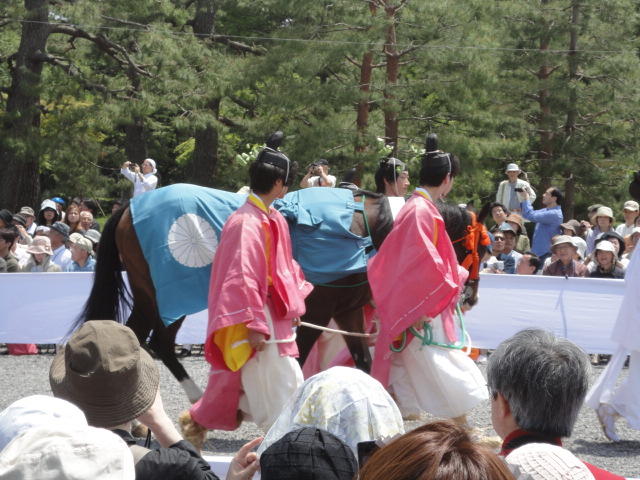 いよいよ3日目、葵祭の当日となりました。抜けるような好天に強い日差しで日焼けしました。 去年、初めて見た時代祭の観覧席はガラガラでしたが、この京都御所の観覧席は完売で満席でした。 ちなみに下鴨神社の観覧席は、ネットで申し込みしようとした時点で既に完売でした。(^_^;)