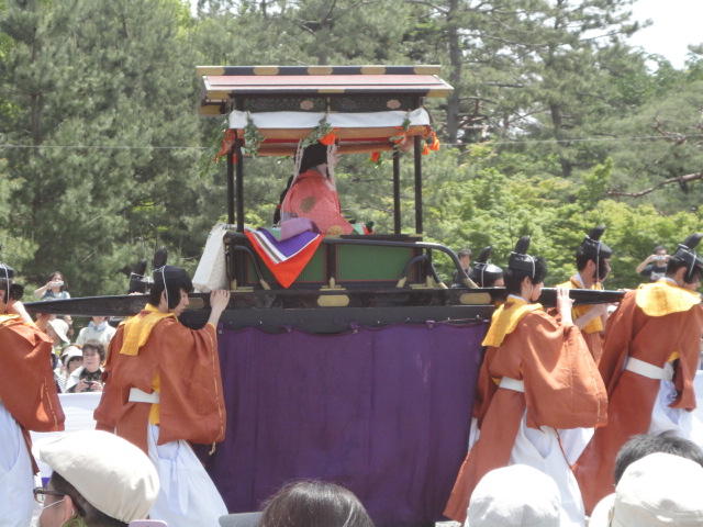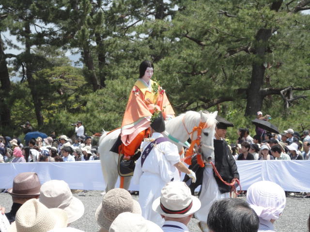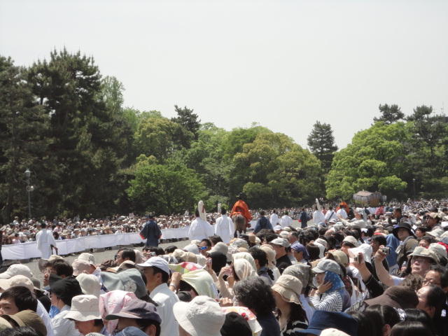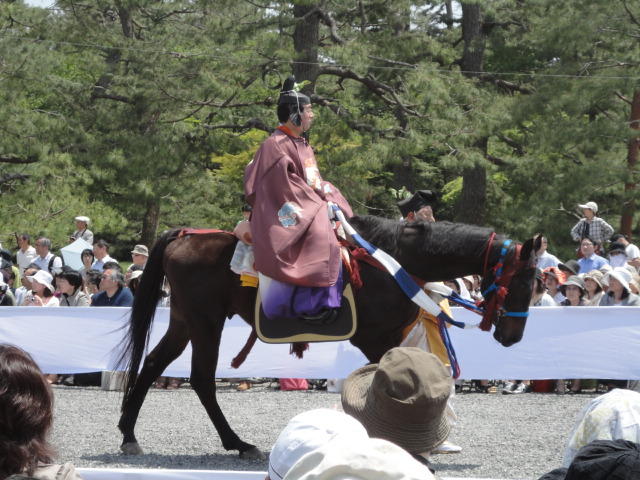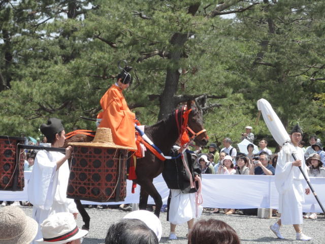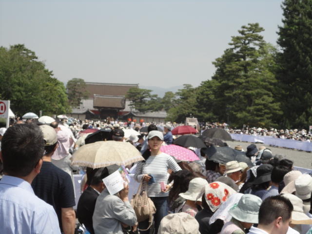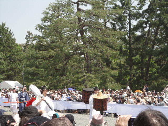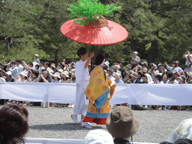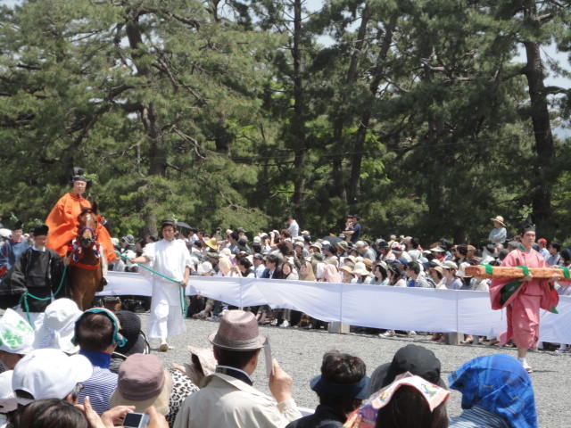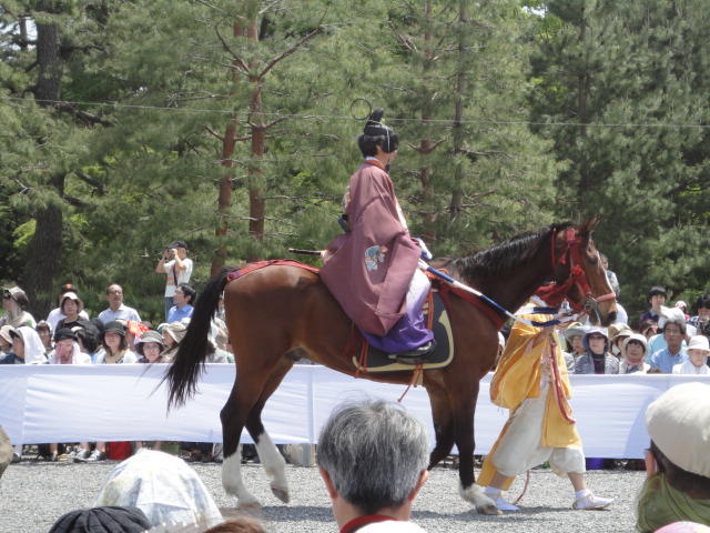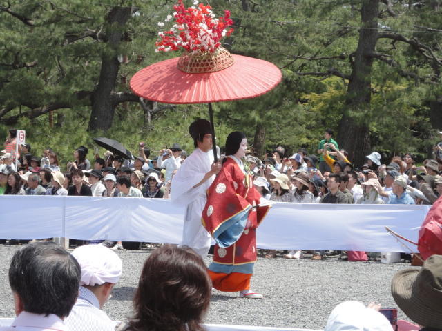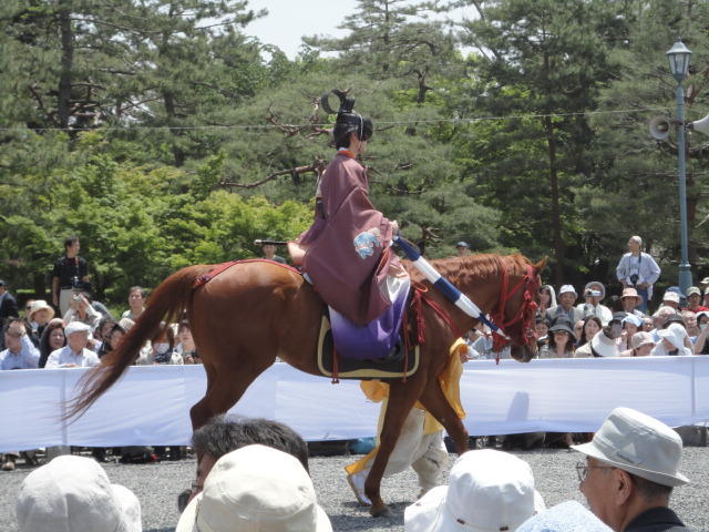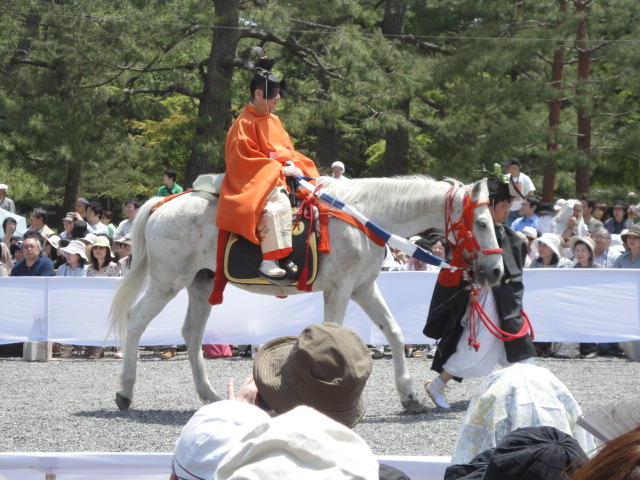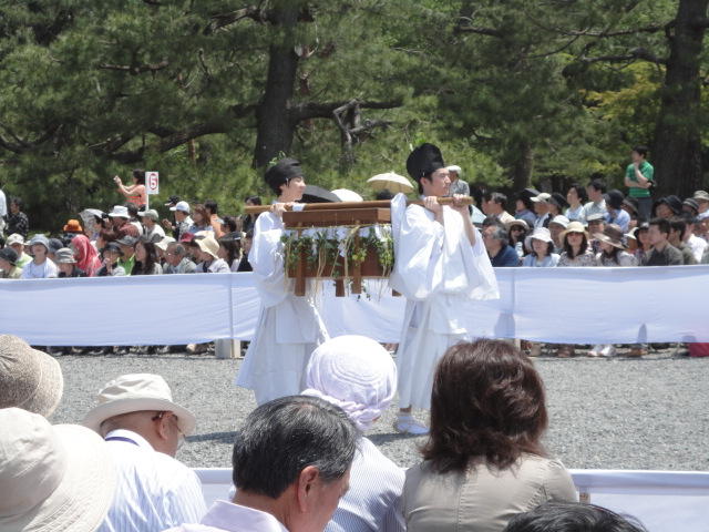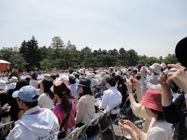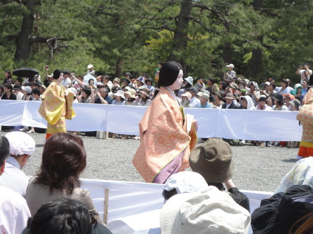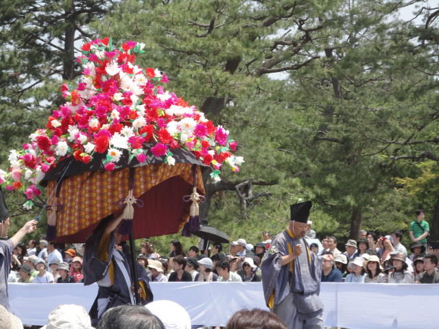 いよいよ3日目、葵祭の当日となりました。抜けるような好天に強い日差しで日焼けしました。 去年、初めて見た時代祭の観覧席はガラガラでしたが、この京都御所の観覧席は完売で満席でした。 ちなみに下鴨神社の観覧席は、ネットで申し込みしようとした時点で既に完売でした。(^_^;)
