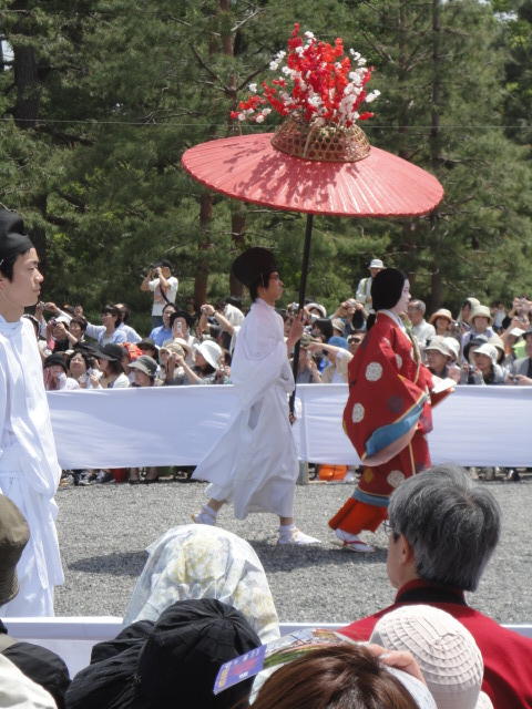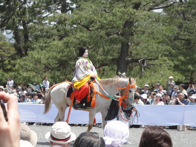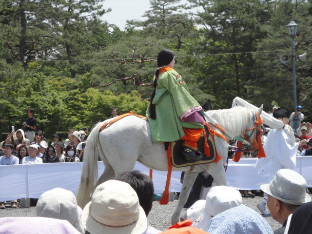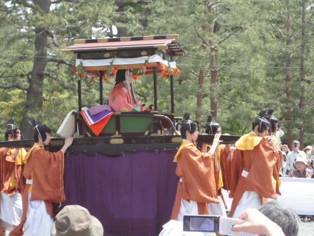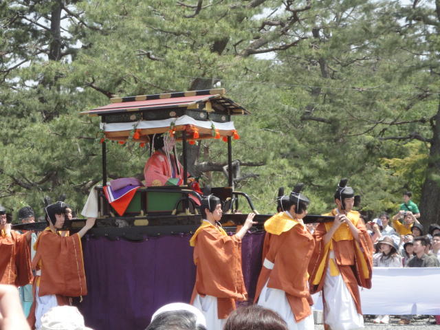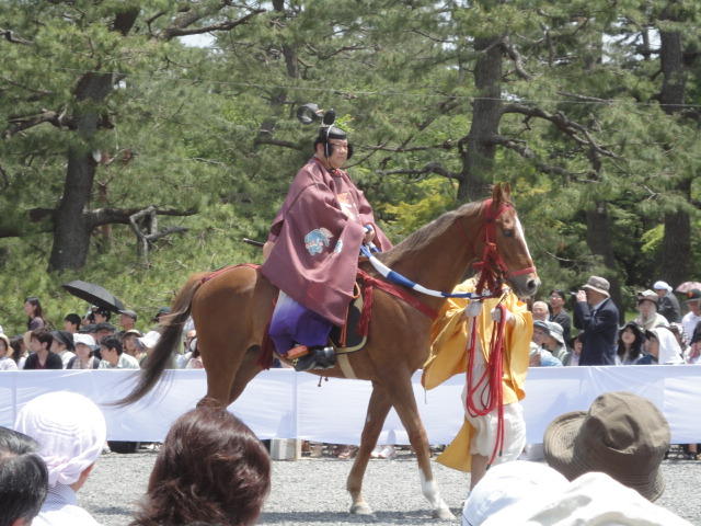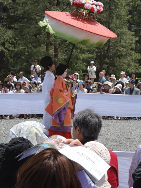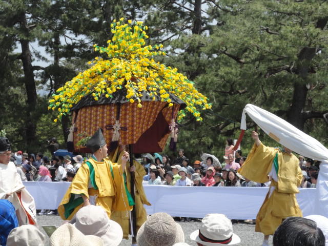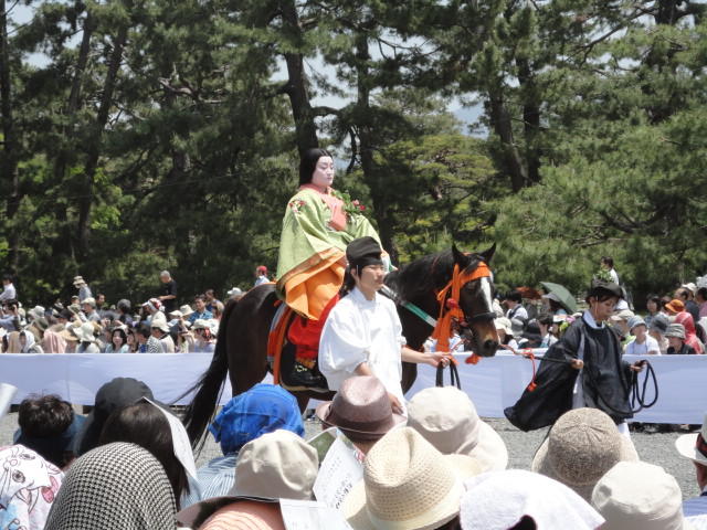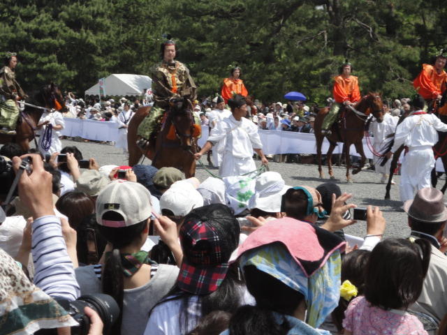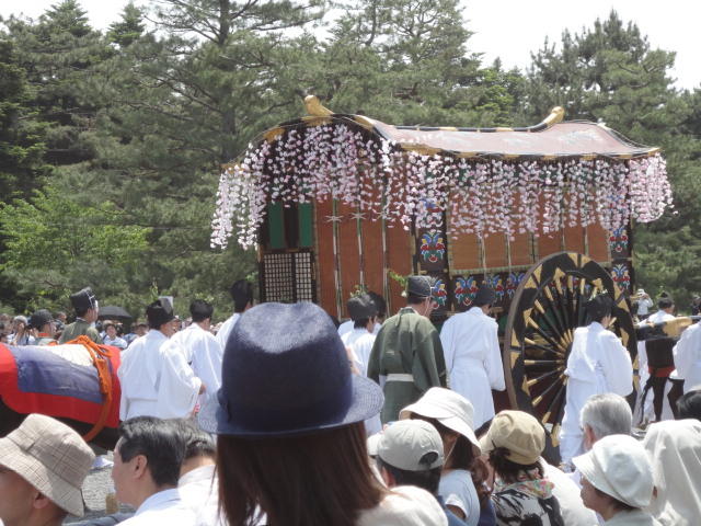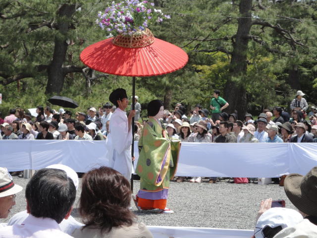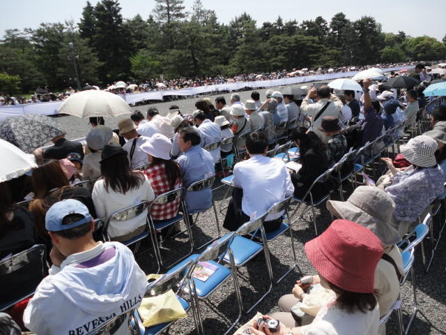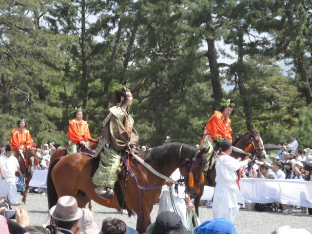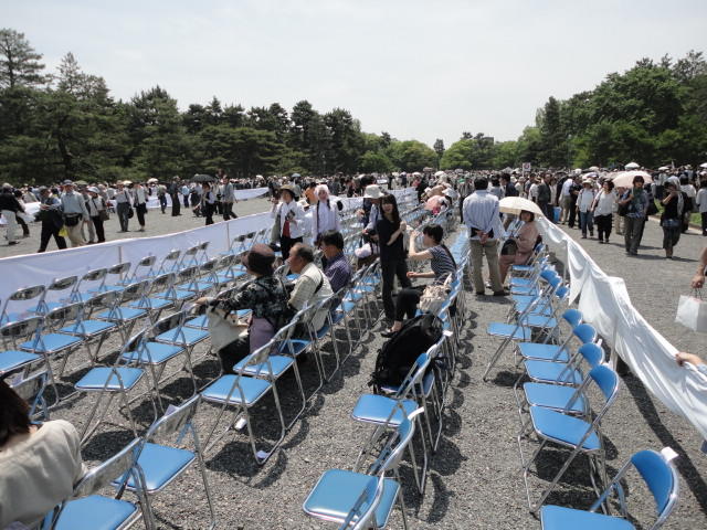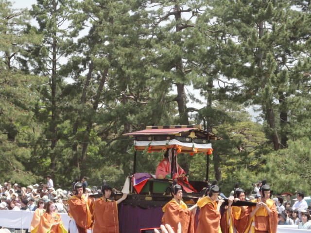 いよいよ3日目、葵祭の当日となりました。抜けるような好天に強い日差しで日焼けしました。 去年、初めて見た時代祭の観覧席はガラガラでしたが、この京都御所の観覧席は完売で満席でした。 ちなみに下鴨神社の観覧席は、ネットで申し込みしようとした時点で既に完売でした。(^_^;)