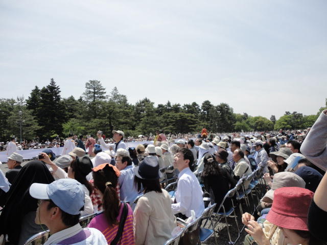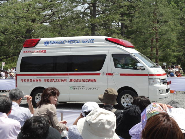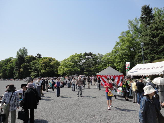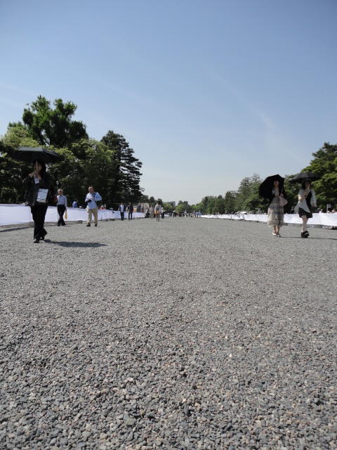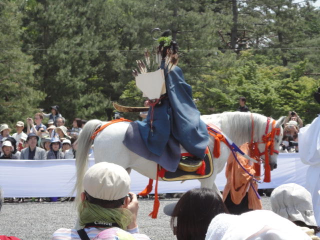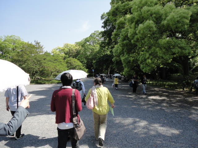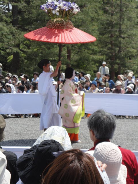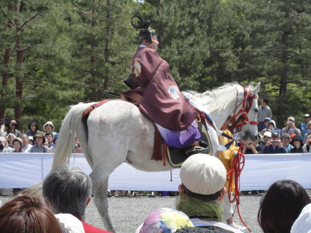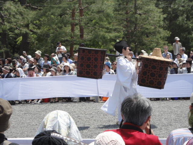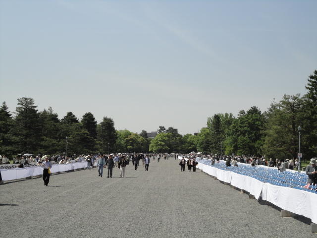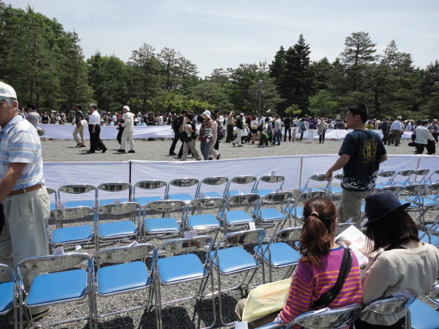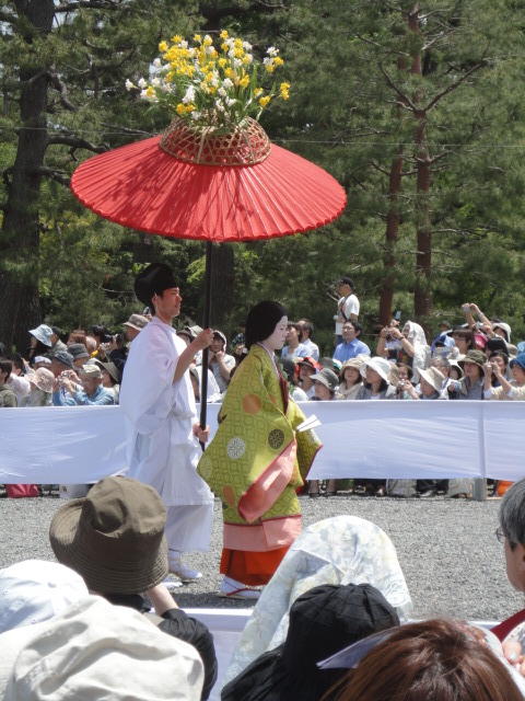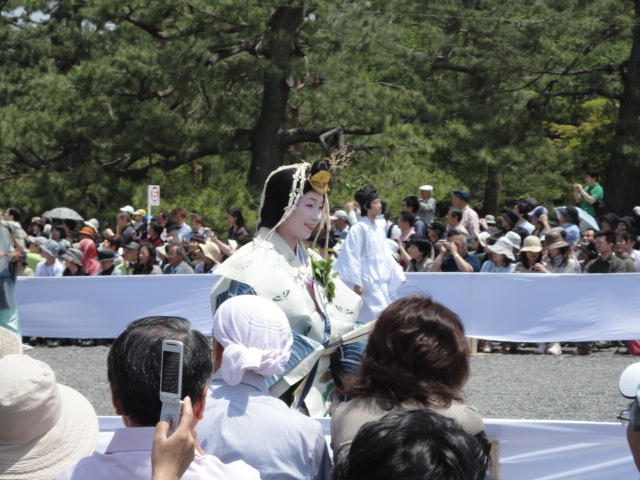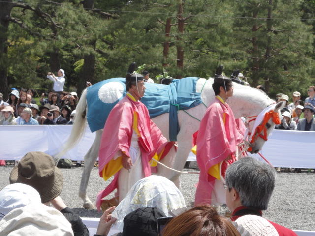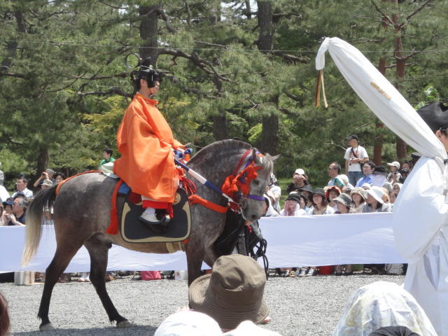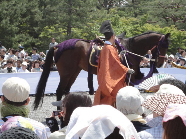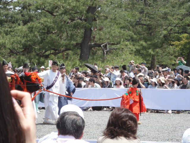 いよいよ3日目、葵祭の当日となりました。抜けるような好天に強い日差しで日焼けしました。 去年、初めて見た時代祭の観覧席はガラガラでしたが、この京都御所の観覧席は完売で満席でした。 ちなみに下鴨神社の観覧席は、ネットで申し込みしようとした時点で既に完売でした。(^_^;)