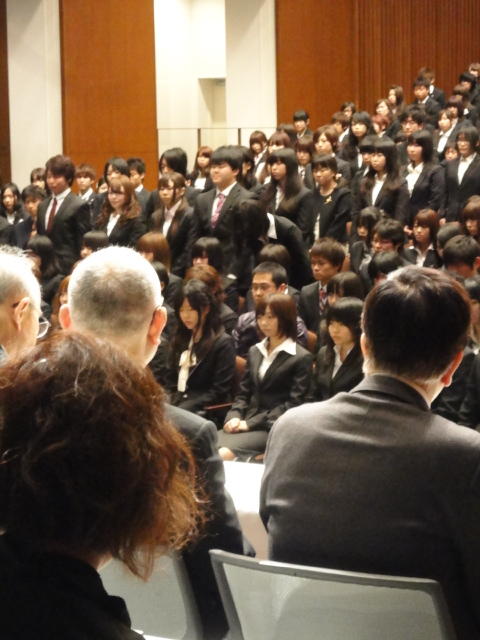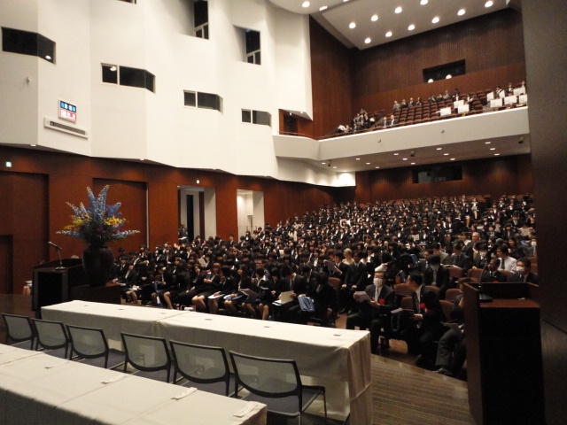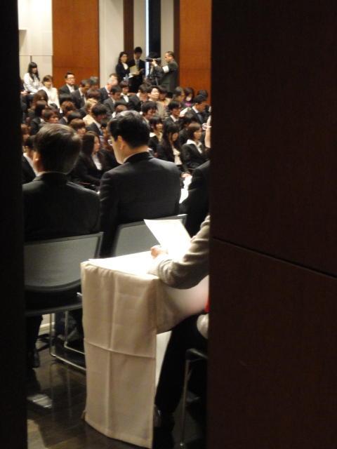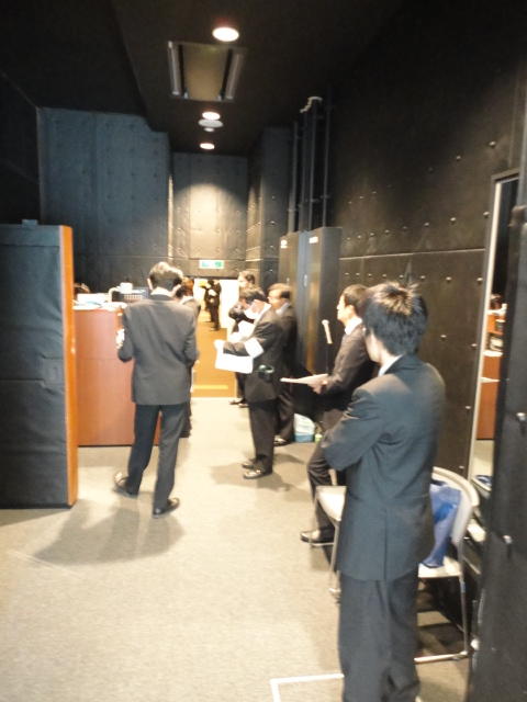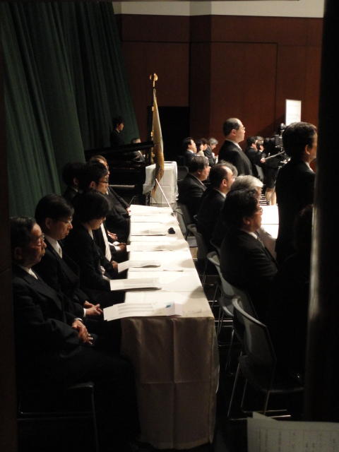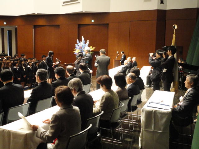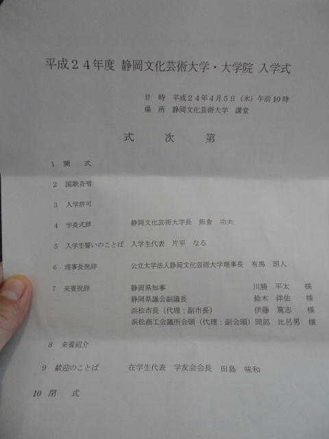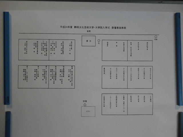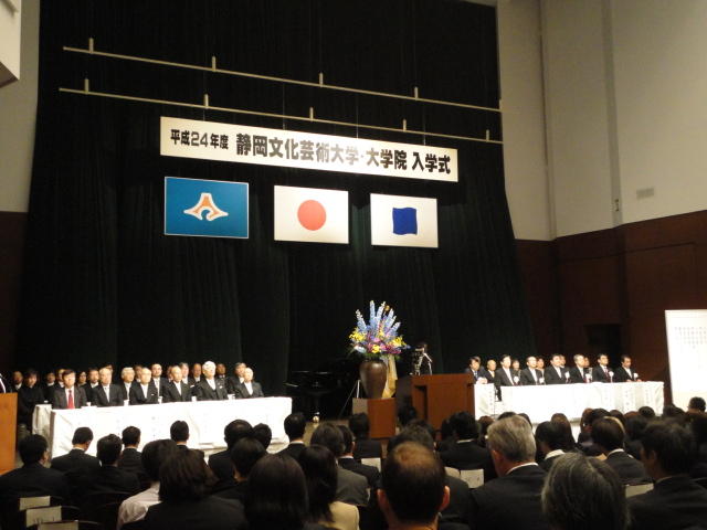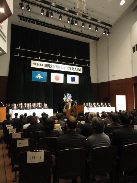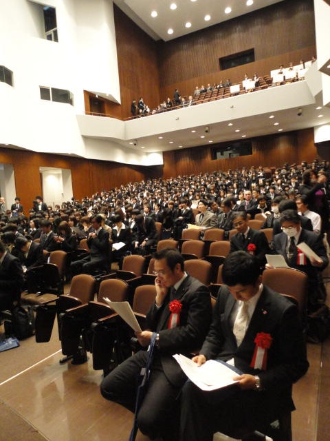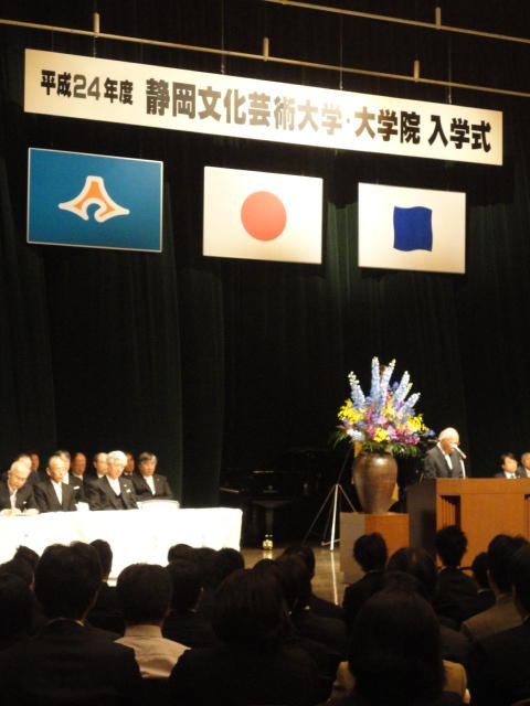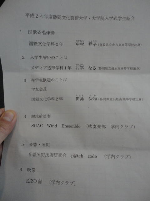 2012年SUAC入学式 2012年4月 長嶋洋一 いつもは2階席ですが、今年は大学院生の呼名を担当したので、舞台裏からの写真です