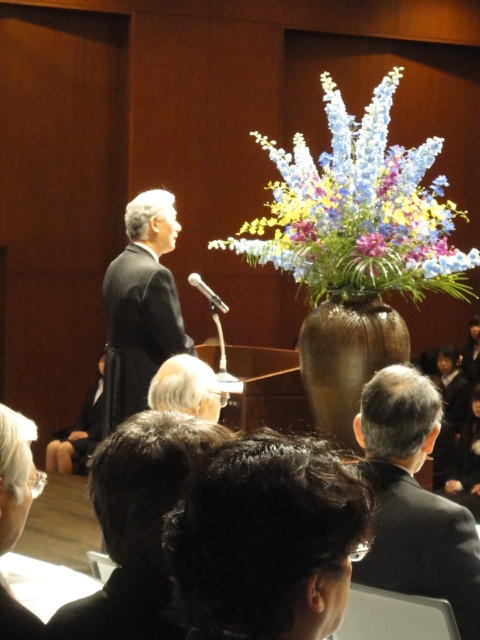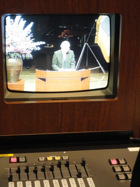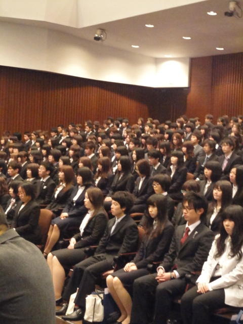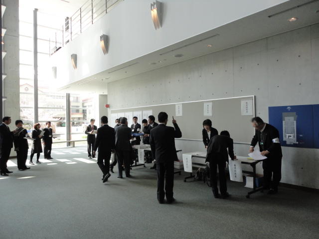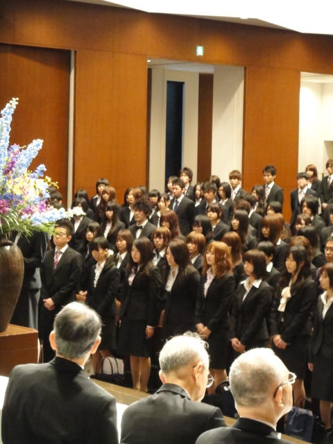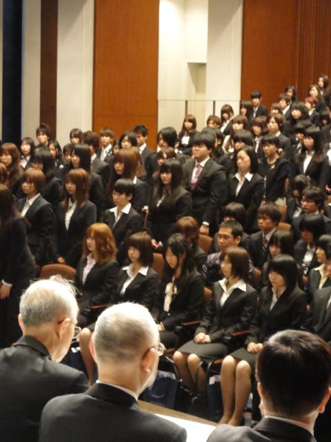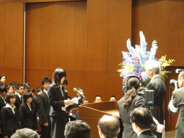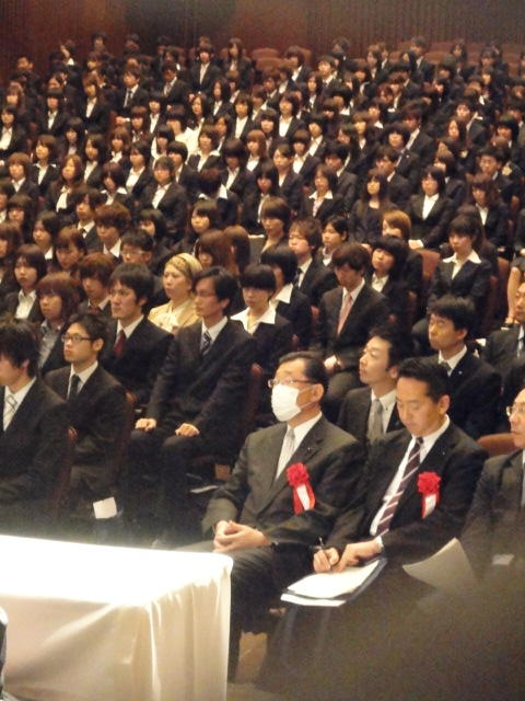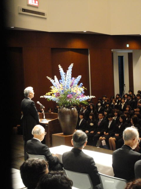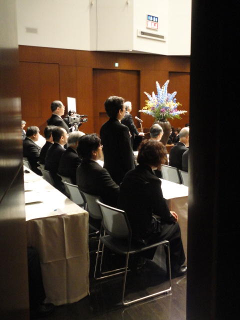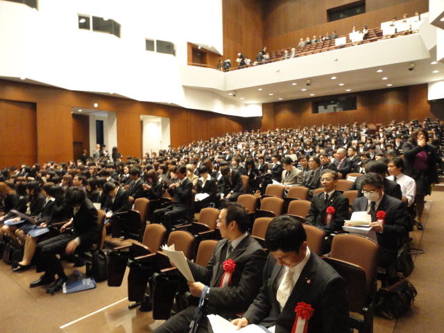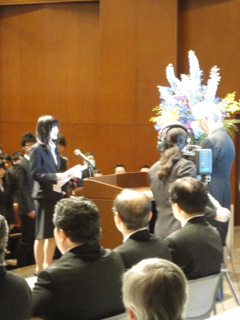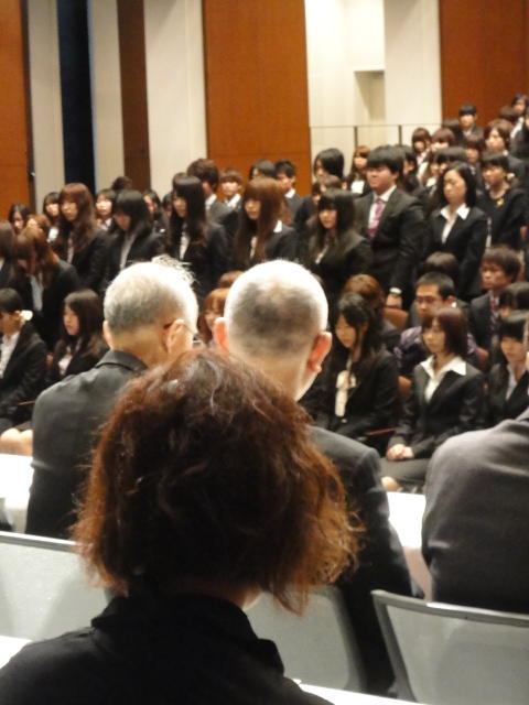 2012年SUAC入学式 2012年4月 長嶋洋一 いつもは2階席ですが、今年は大学院生の呼名を担当したので、舞台裏からの写真です