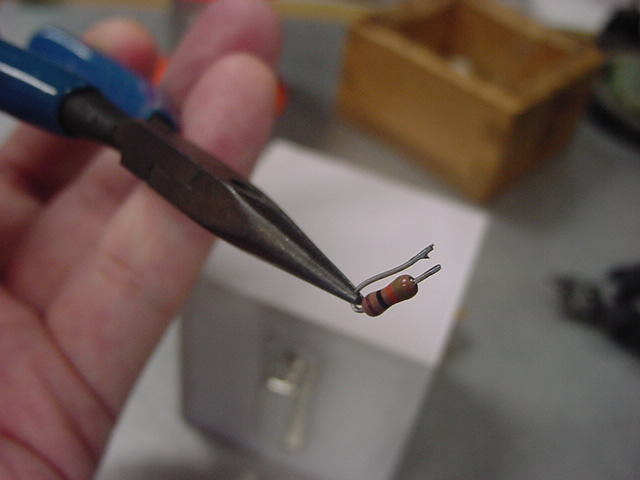 空中配線のためにリード線を90度曲げて