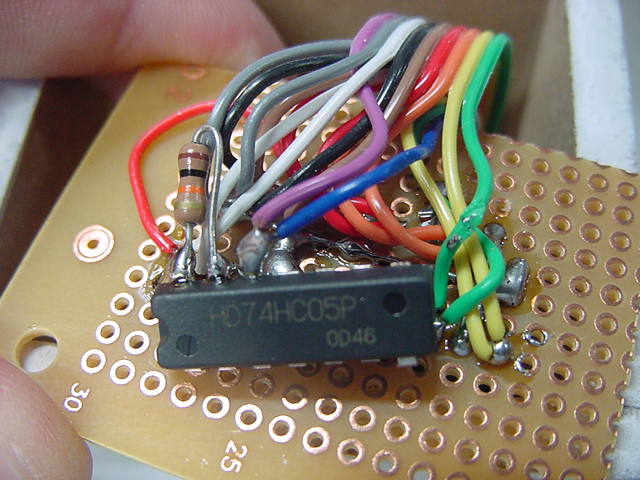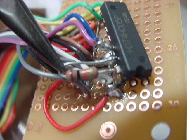 増設にオープンコレクタの74HC05。6回路のうち1つだけ使用