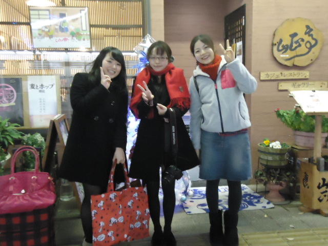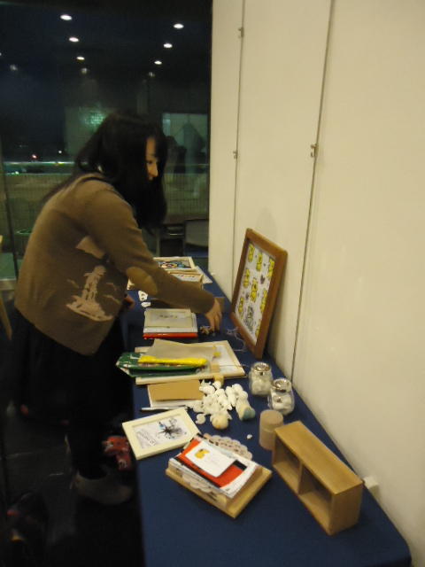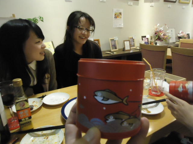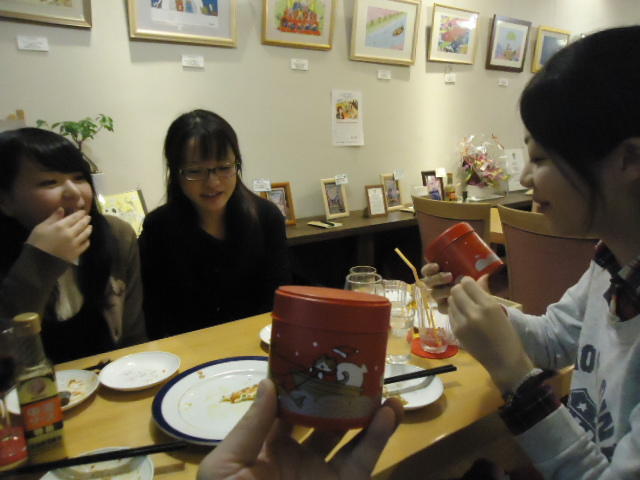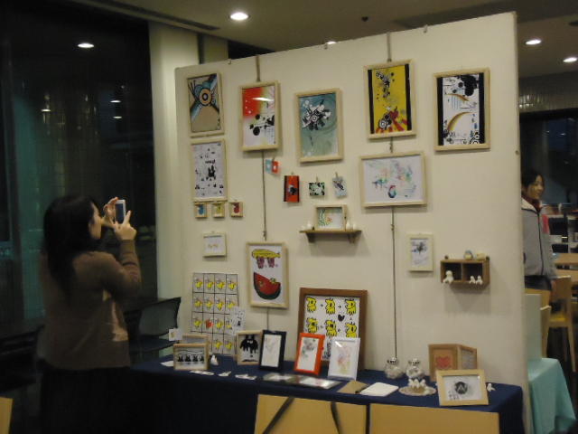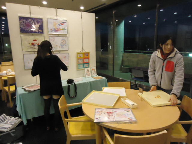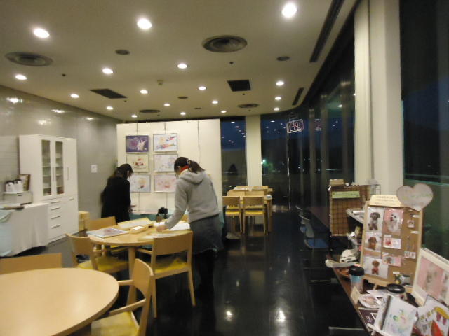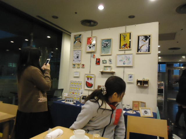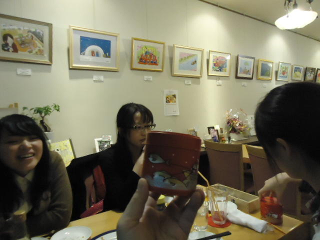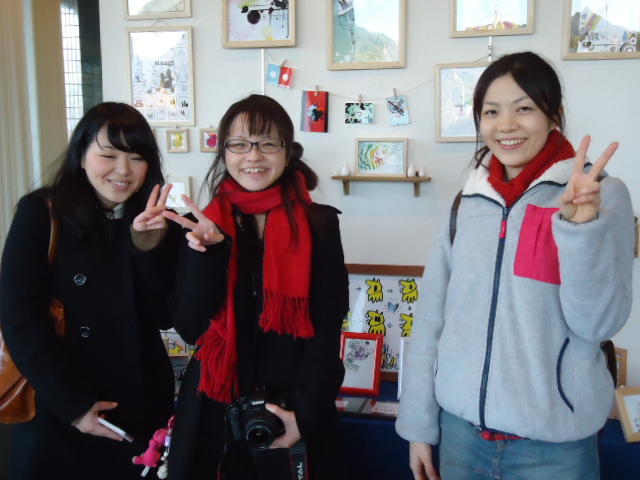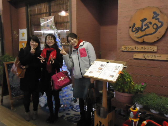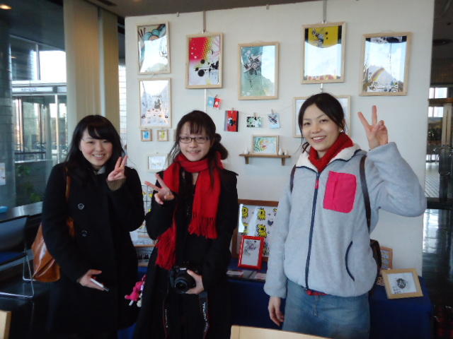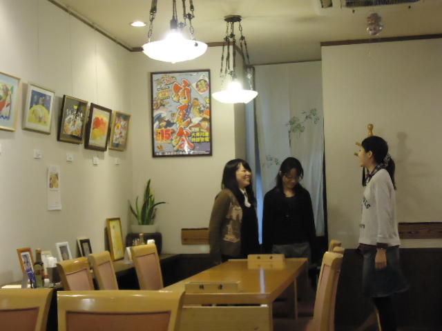見崎央佳 個展 ・ 山村知世 個展 2012年12月 長嶋洋一 メディア造形学科卒業生の見崎さんと伴さん、そして山村さんが同時期に焼津で個展をしている、ということで、また浜松から焼津に出かけてきました。 まず、焼津文化センターのレストラン内での見崎さんと伴さんの作品展示と撤収に付き合い、 次にいつものカフェ「山正亭」で山村さんの個展の中で夕食、そしてこれぞ焼津、という居酒屋というコースでした。