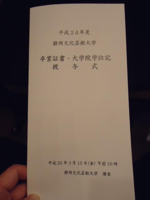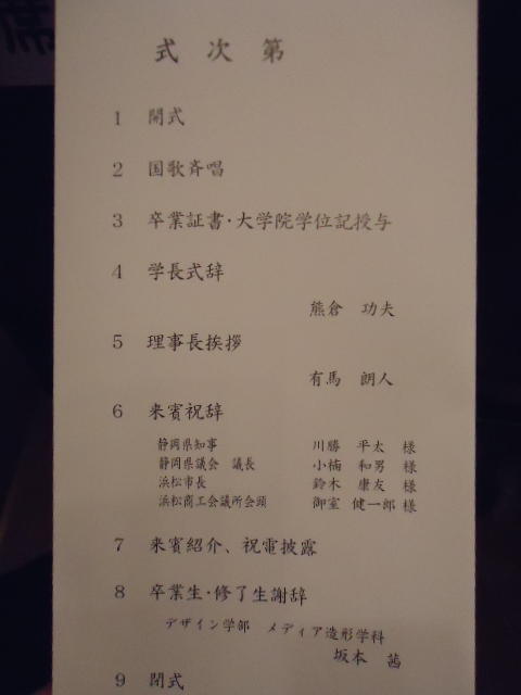 SUAC卒業式2013 2013年3月 長嶋洋一 講堂・卒業式 メディア造形学科・卒業証書授与式 1次会 ホテルオークラ4階 ちょっとブレーク 2次会 ホテルオークラ地下1階 3次会 ホテルオークラ42階スイート古田ルーム