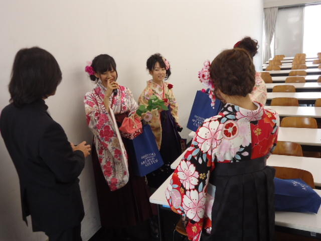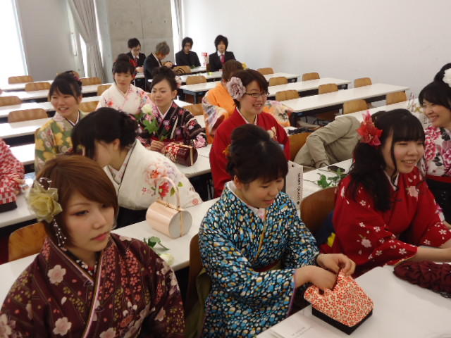 講堂・卒業式 メディア造形学科・卒業証書授与式 1次会 ホテルオークラ4階 ちょっとブレーク 2次会 ホテルオークラ地下1階 3次会 ホテルオークラ42階スイート古田ルーム