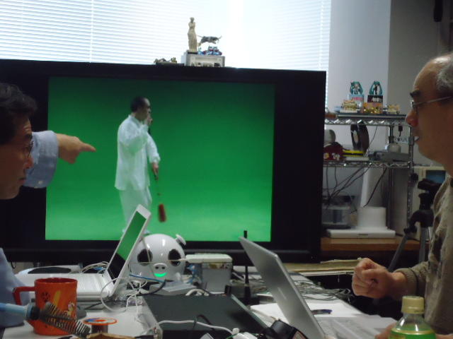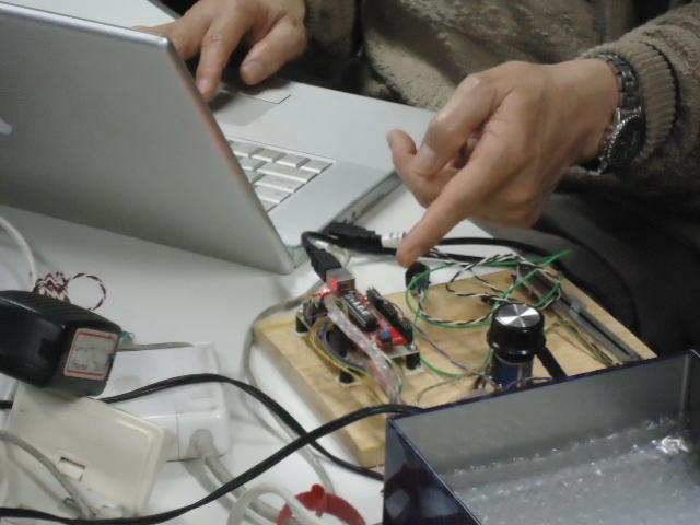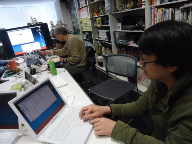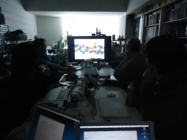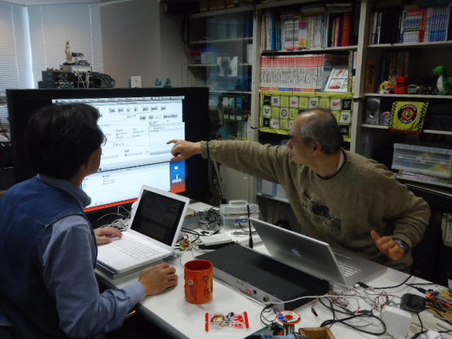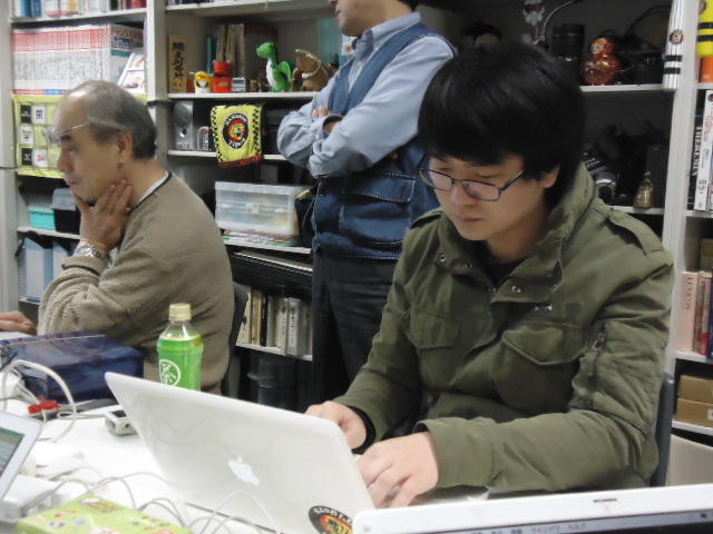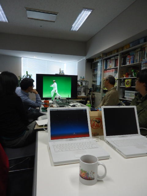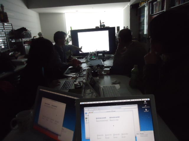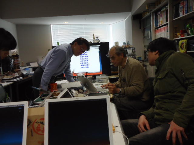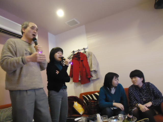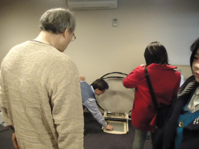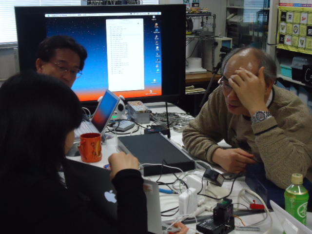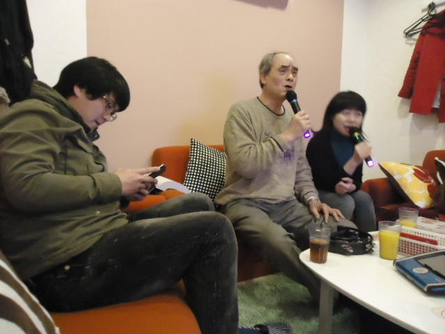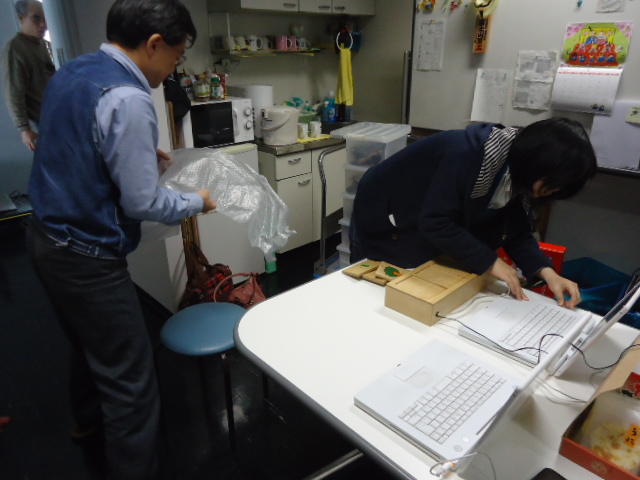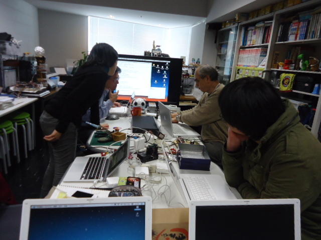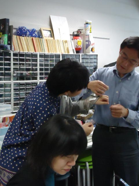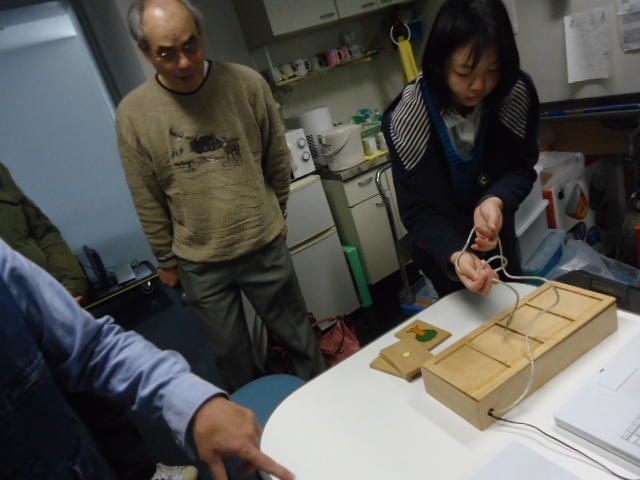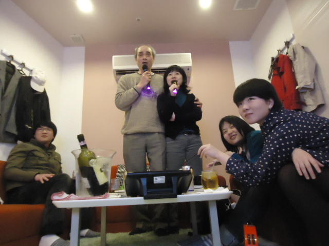 インスタレーションの勉強のため、台湾開南大学の作曲家、 Shing-Kwei教授がまた来日して、1106研究室に通う日々 の2日目の3月28日は、新2回生の坂下さんと金重さんも 参加しました。盛り沢山の内容 + 国際親善カラオケ(^_^)