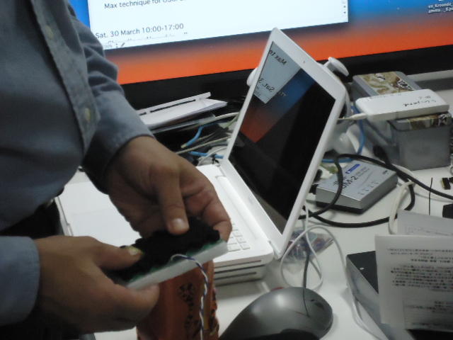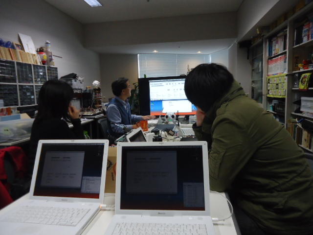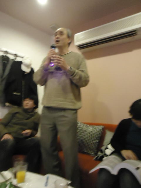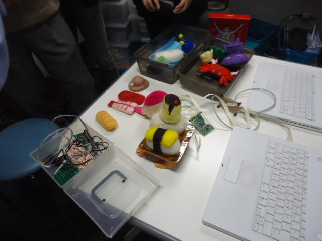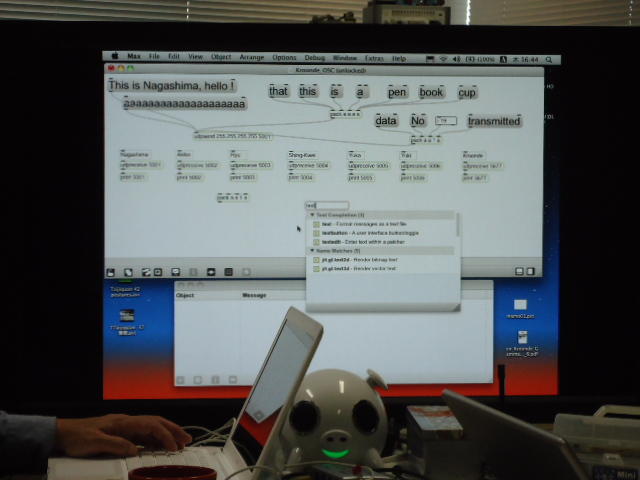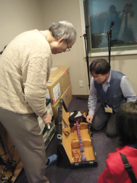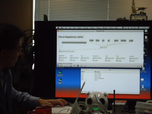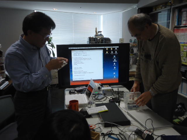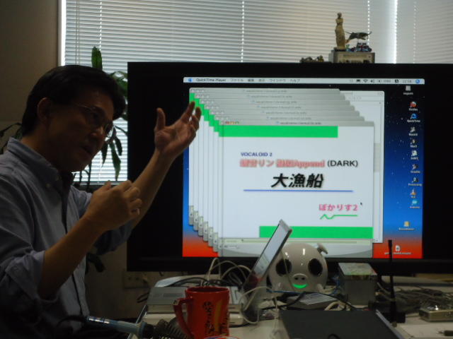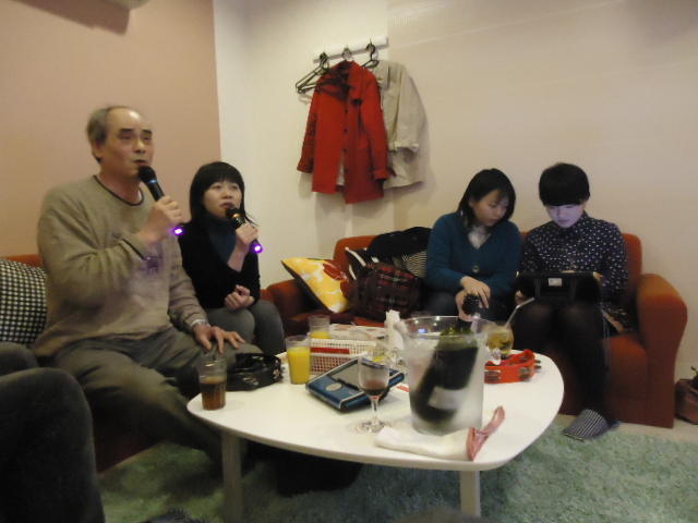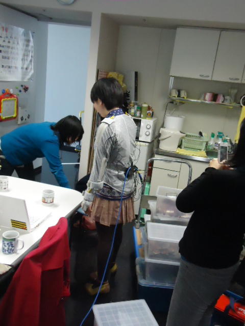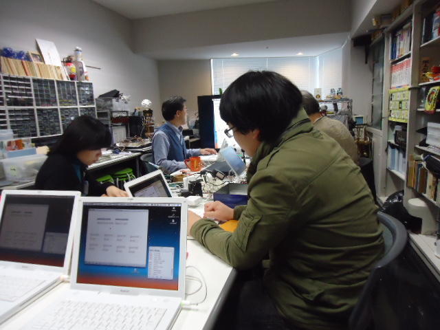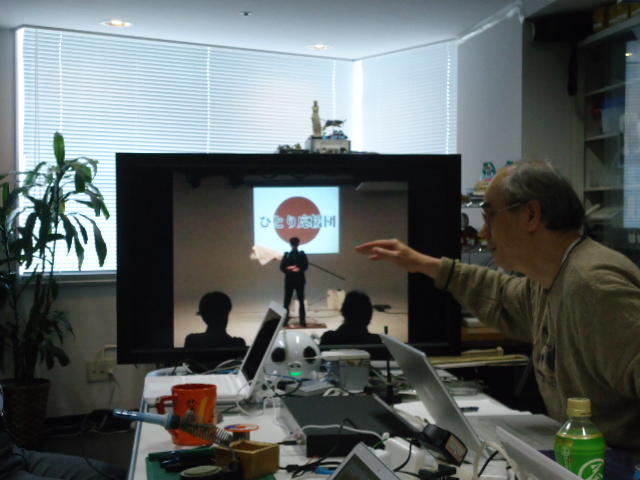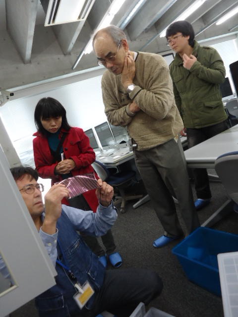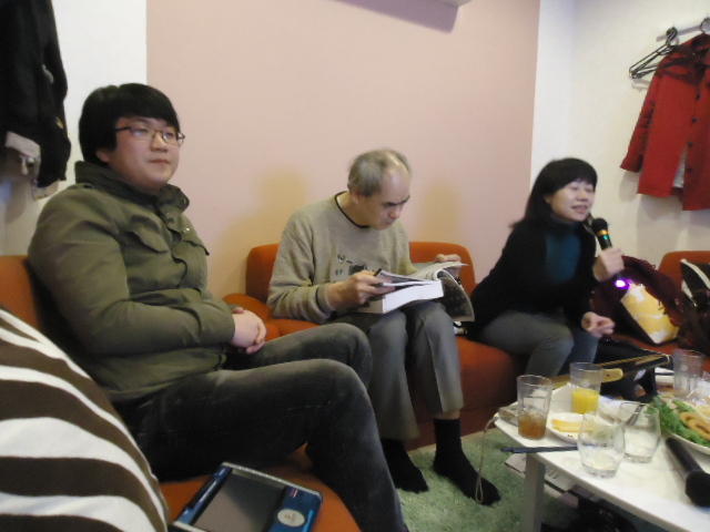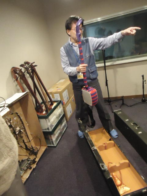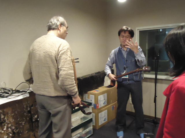 インスタレーションの勉強のため、台湾開南大学の作曲家、 Shing-Kwei教授がまた来日して、1106研究室に通う日々 の2日目の3月28日は、新2回生の坂下さんと金重さんも 参加しました。盛り沢山の内容 + 国際親善カラオケ(^_^)