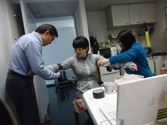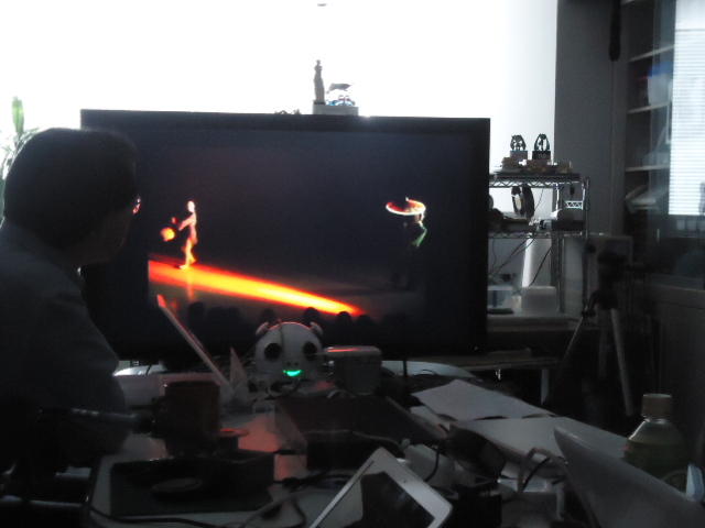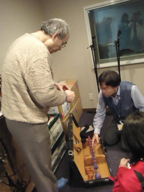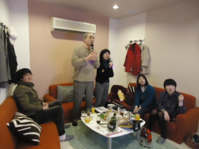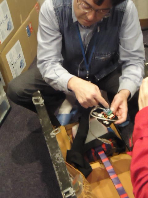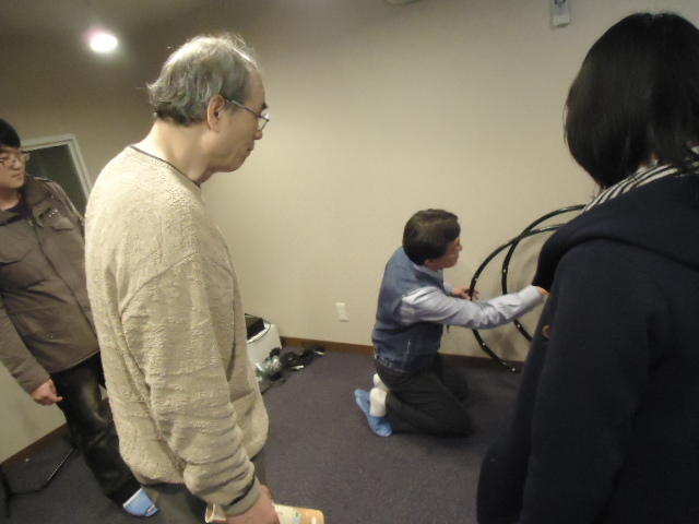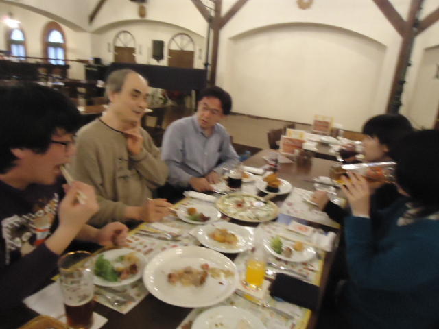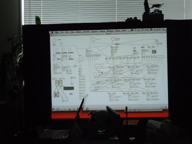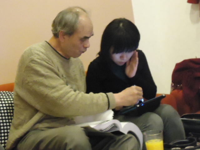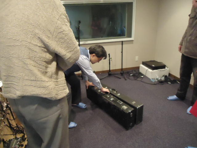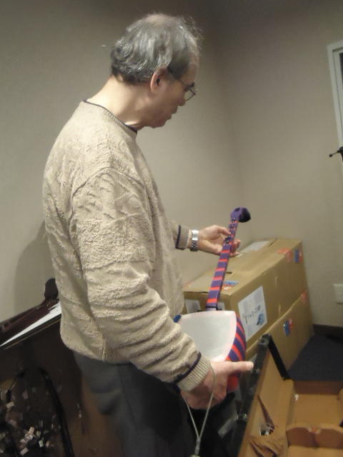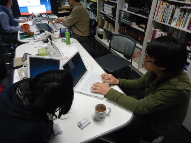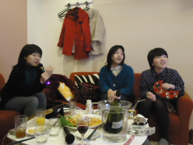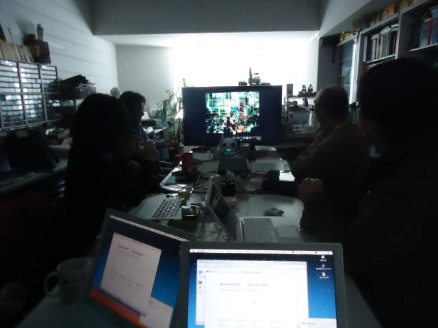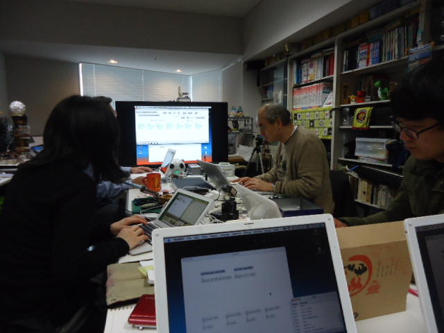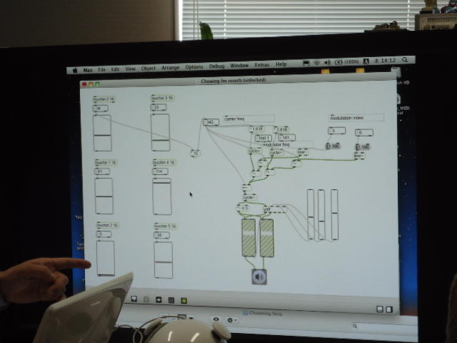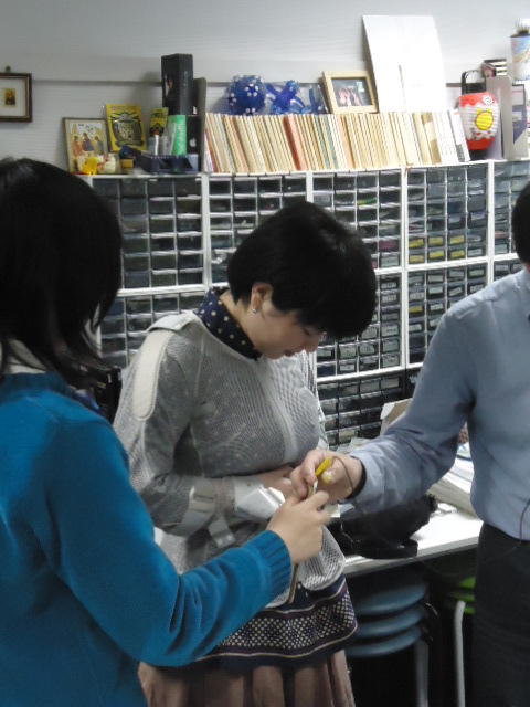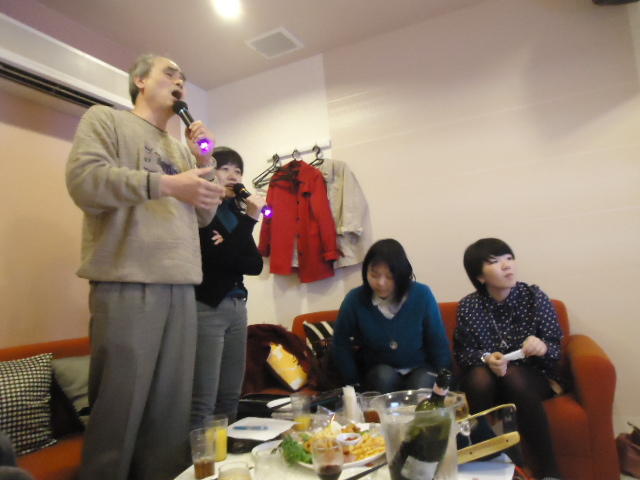 インスタレーションの勉強のため、台湾開南大学の作曲家、 Shing-Kwei教授がまた来日して、1106研究室に通う日々 の2日目の3月28日は、新2回生の坂下さんと金重さんも 参加しました。盛り沢山の内容 + 国際親善カラオケ(^_^)