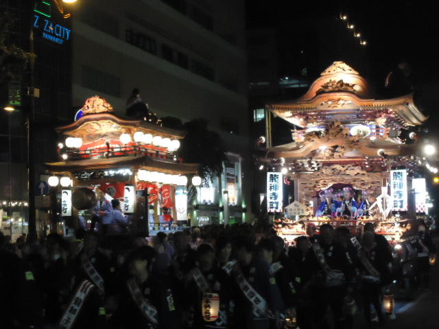 メディア造形学科の新歓の準備(買い出し)で頑張った、2回生の金重さん・荒川さんとともに、久しぶりに奥浜名湖方面(半僧坊・竜ヶ岩洞・舘山寺)に行き、SUACに戻って坂下さんも合流して、浜松まつり初日の御殿屋台引き回しに行きました。ビデオカメラでのロケに挑戦したので、これが映像作品として結実するのを期待しましょう。