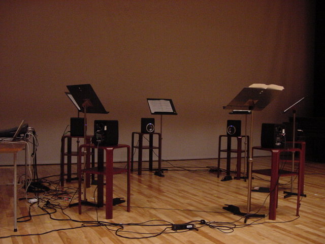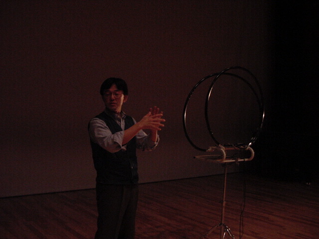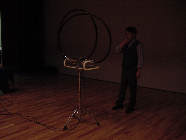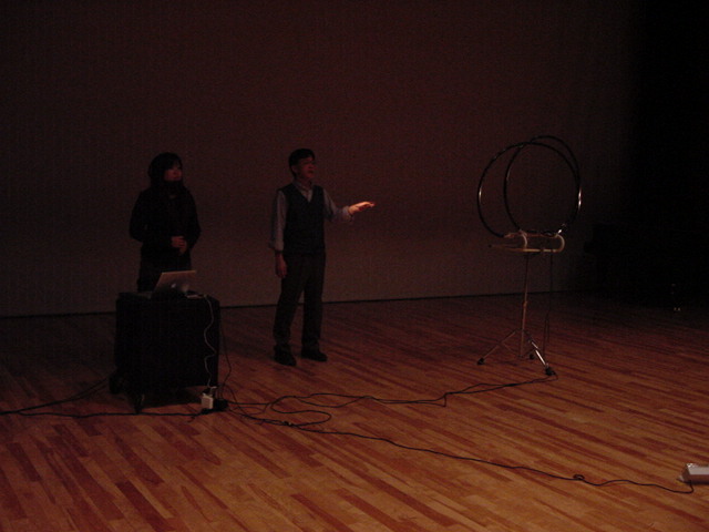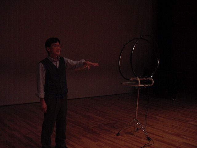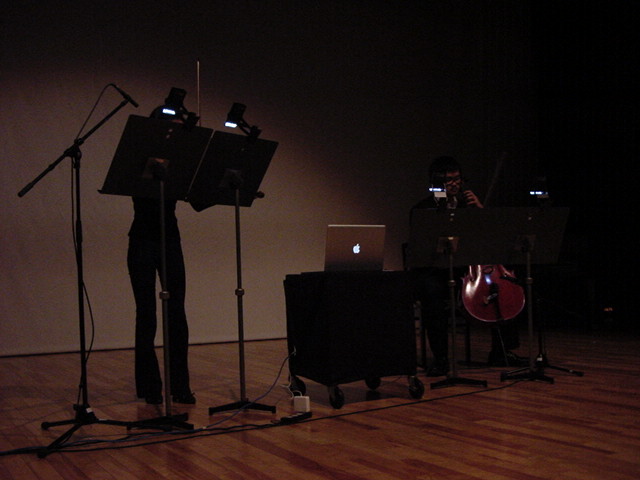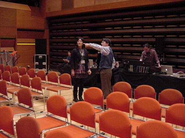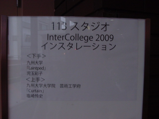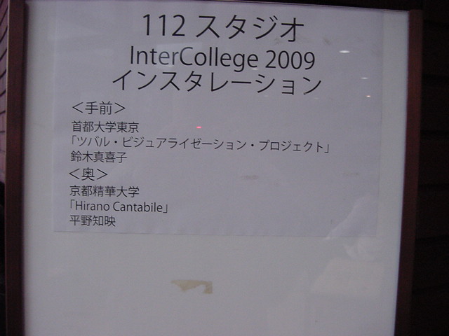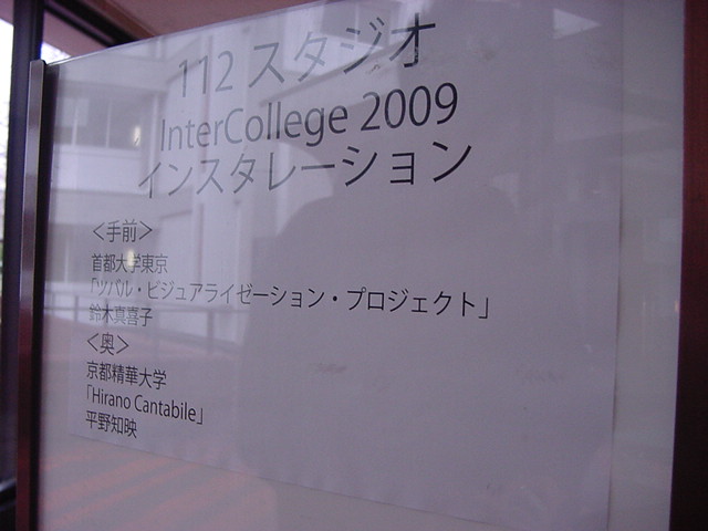 2009年のインカレは国立音大/東京芸大が会場でした。 作家として参加の4人、スタッフ/勉強のため参加の2人の学生とともに、展示設置・リハーサルの関係で芸大には行かず、 国立音大に通う3日間となりました。 今回は初めて、学生2人が情報処理学会 音楽情報科学研究会で作品メイキングの発表も行いました。 また、久しぶりに大人のコンサートもあり、無事に新作初演を果たしました(^_^)。 僕のカメラの写真だけですが、何人もが撮ったので、詳細不明です。 暗くて写っていなかったもの等を除いてノーカットなのはいつもの通りです。