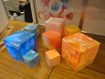 夏休み中から真柴さんと共同で制作してきた”ころがる風景”という作品ですが、 色々な意味で本当に問題児でした。当日まで結構振り回された感はありましたが、 重量や操作の制限、材料の相性など、動く仕掛けのあるものを作る時どういった 制約があるのか勉強になりました。ものを作る、ということに関して少し成長した ように思います。 会場では多くの方々の不思議そうな顔を見ることができ、”やったね”と思いつつ 素知らぬ顔で操縦に励みました。先輩方や金子さんの作品もたくさんの方が 興味を持って見て下さり、とても楽しい2日間になったと思います。 他の参加者の方々の作品に直に触れ、お話することができたのも大変良い経験に なりました。かなり幅広いジャンルの作品があの会場に集結しており、もう本当に なんでもありの世界で、何を作ってもいいんだな、と改めて認識しました。自分の 作りたいものをもっと柔軟な発想で形にしていけるようにこの先心掛けていきたい と思います。 作品自体に関しても、交流に関しても、この2日間のうちで自分が反省すべき点を たくさん見つける事ができました。それを次回の制作に生かして、もっと知識を つけることを目標に頑張っていきたいです。 今回、長嶋先生をはじめ前田先輩や真柴さん、金子さんと一緒に楽しい空間に いられたことを嬉しく思います。特に長嶋先生には本当にお世話になりました。 貴重な機会を与えて頂き、ありがとうございました。真柴 里穂