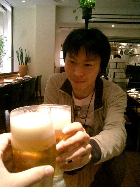 品川駅構内のイタリアンのお店で、卒業生で活躍中の山口クンといろいろ情報交換しながら一杯 ★