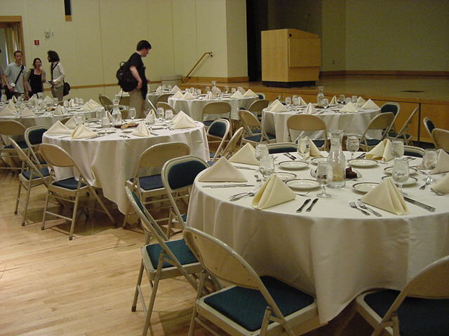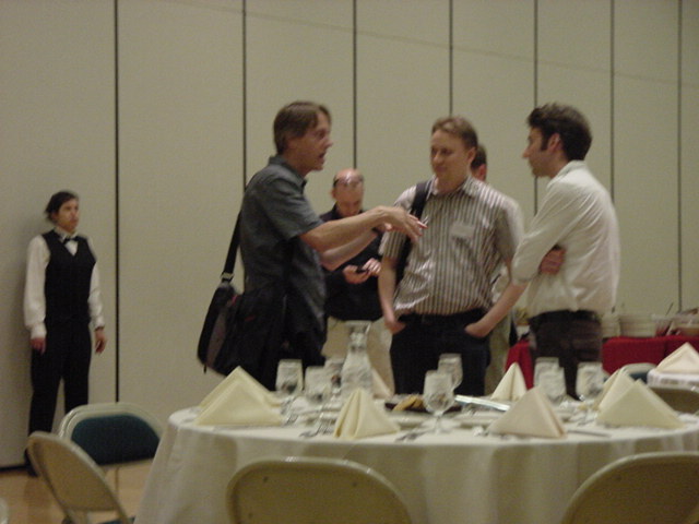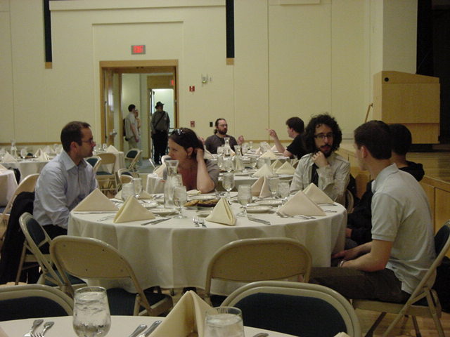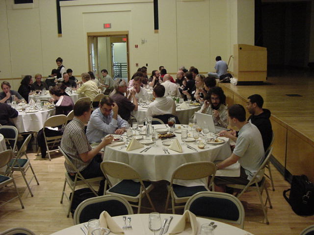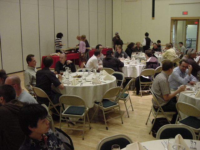 最後のペーパーセッションも終わり、最終日の夕食のバンケットに参加しました。なんとCMUあるいはピッツバーグでは、酒と麻薬は同格で「禁止」のため(^_^;)、ノンアルコールにベジタリアンの精進バンケットでした。これで40ドルは痛かった(^_^;) ★ ★ ★ ★ ★ ★ ★ ★ ★ ★ ★ ★ ★ ★ ★ ★ ★ ★ ★ ★ ★ ★ ★ ★ ★ ★ ★ ★ ★ ★ ★
