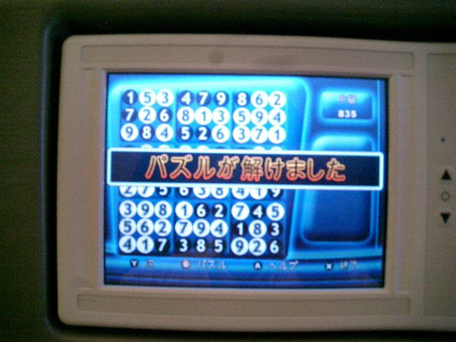 成田空港はいつもの風景で、新型インフルエンザの騒ぎも関係なく、マスクもほとんど見かけません ★ ★ ★ ★ ★ ★ ★まずはシカゴまでのANAのフライト。機内のゲームに「数独」が加わってました。これだとDSの持参は不要です(^_^;) ★ ★ ★ ★ ★ ★ ★