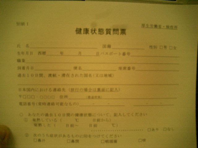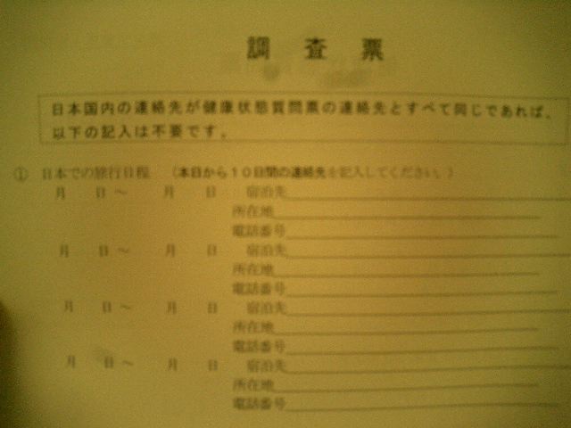 日本へのフライトです。検疫調査票が用意されました ★ ★ ★ ★ ★ ★ ★ ★