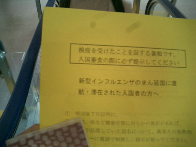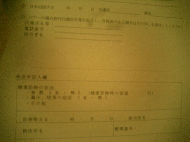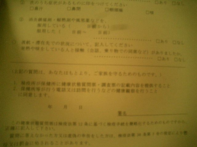 機内に検疫官が入ってきたのですが、この写真は撮ってはイケナイという事で、秘密です(^_^;)