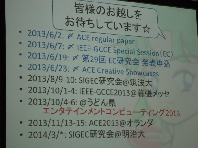 EC研究会の模様です。あいかわらず、神戸大の塚本先生はユビキタスコンピューティングを身をもって装着していました。Google Glassが出回ってきたら、目立たなくなるのでしょうか。 ★ ★ ★ ★ ★ ★ ★ ★ ★ ★ ★ ★ ★ ★
